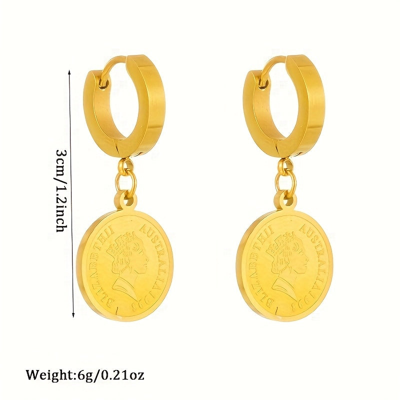 Add a touch of vintage glamour to your look with these retro queen portrait dangle earrings made of high-quality stainless steel.