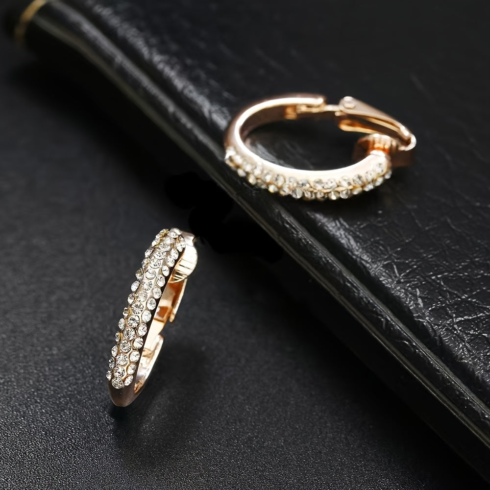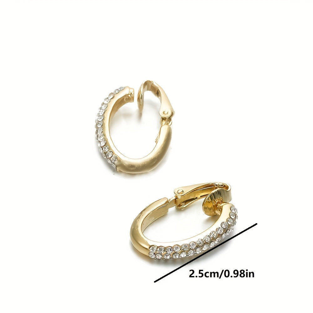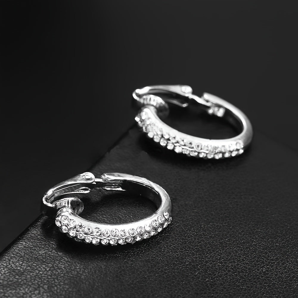 Add a touch of glamour to your look with these clip-on hoop earrings featuring sparkling rhinestones. No piercing required, perfect for parties and nightclubs.
