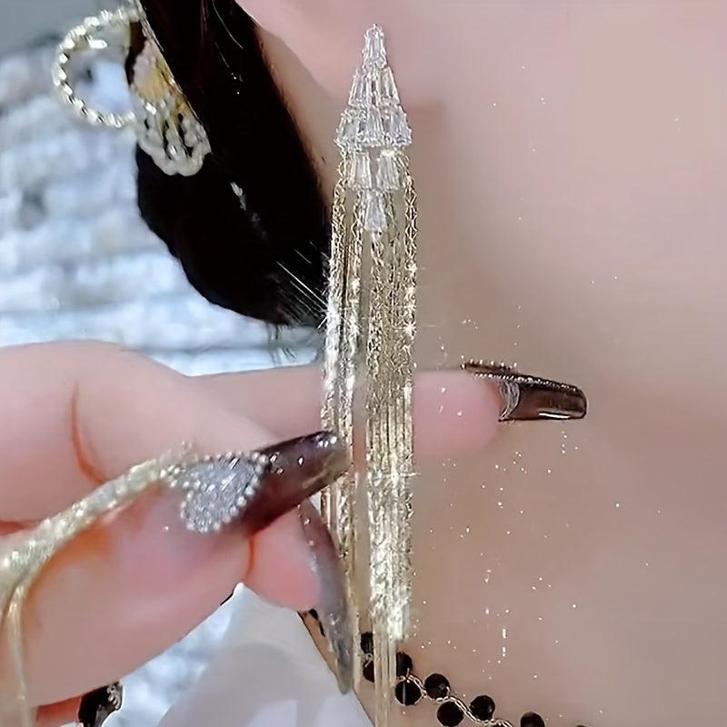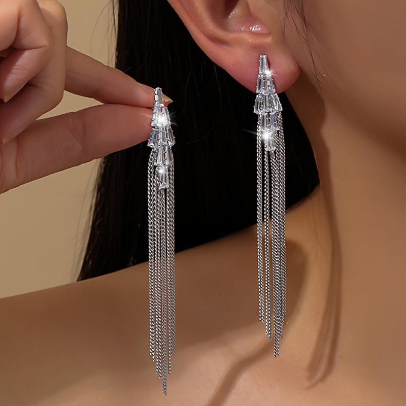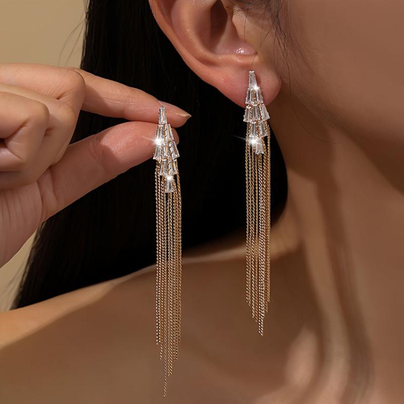 Add a touch of glamour to any outfit with these elegant rhinestone tassel earrings. Perfect for weddings, holidays, and vacations.