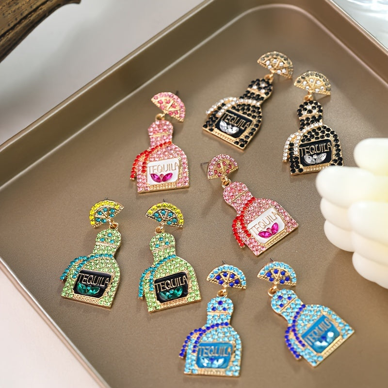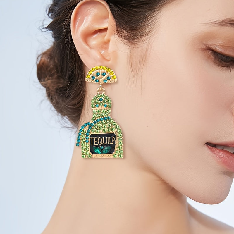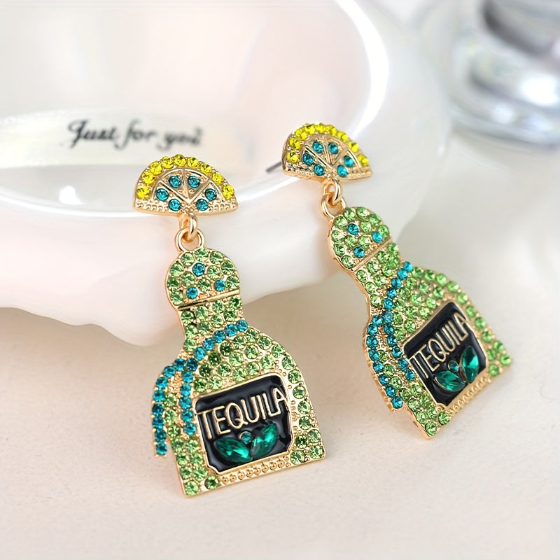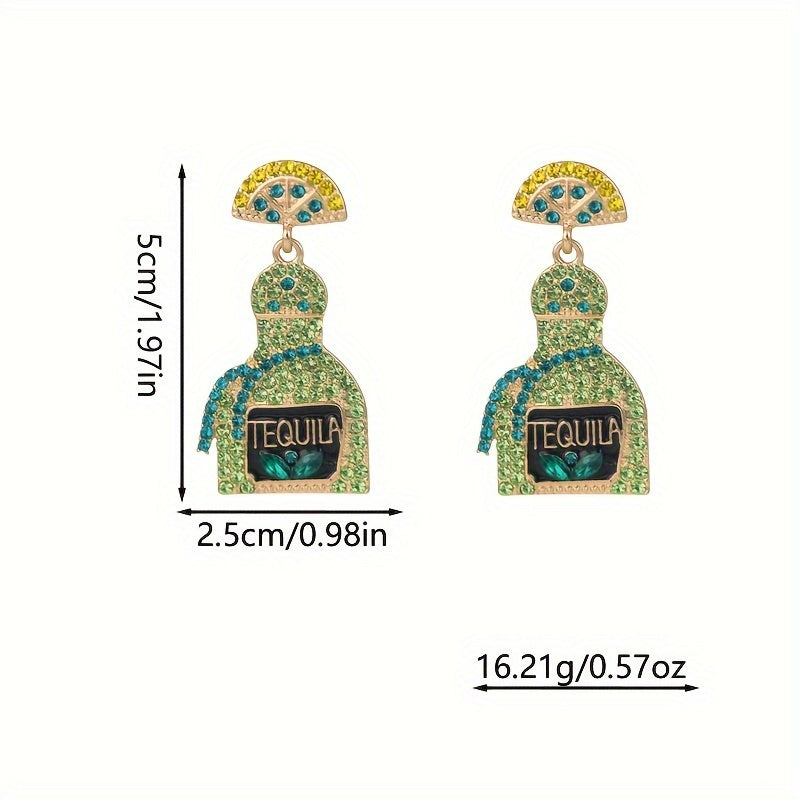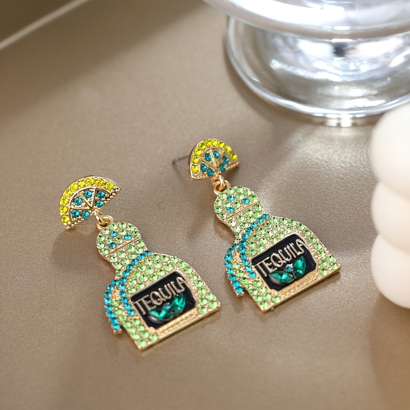 Rhinestone Tequila Earrings 14K Plated Zinc for Daily & Party
