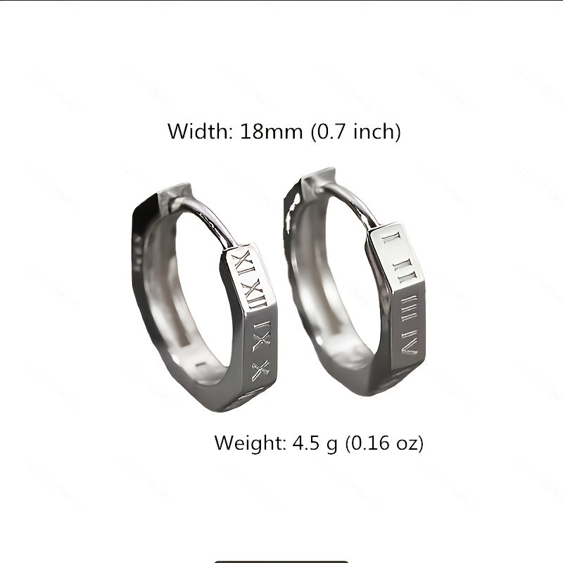 Enhance your style with these sleek Roman digital men's earrings in silver. Perfect for adding a modern touch to your look.