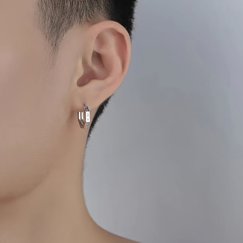 Roman Digital Men's Single Ear Buckle Male Ear Jewelry Silver