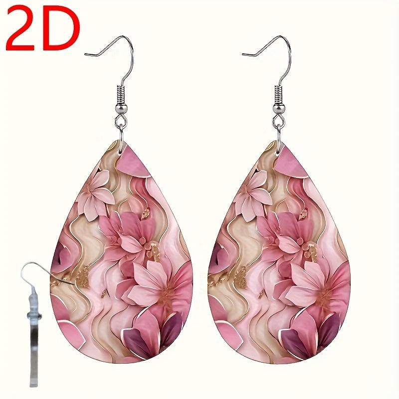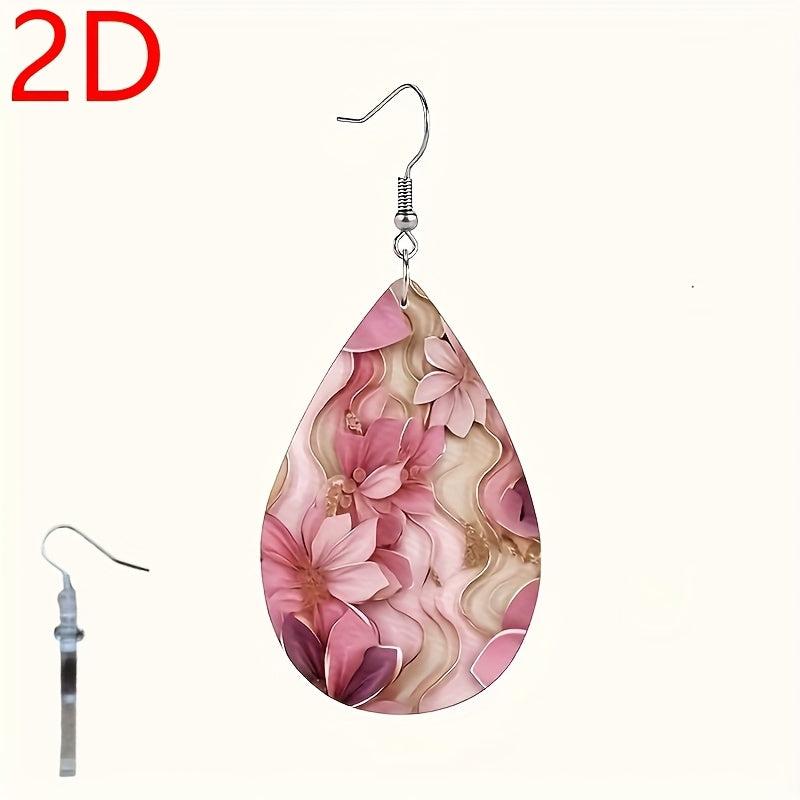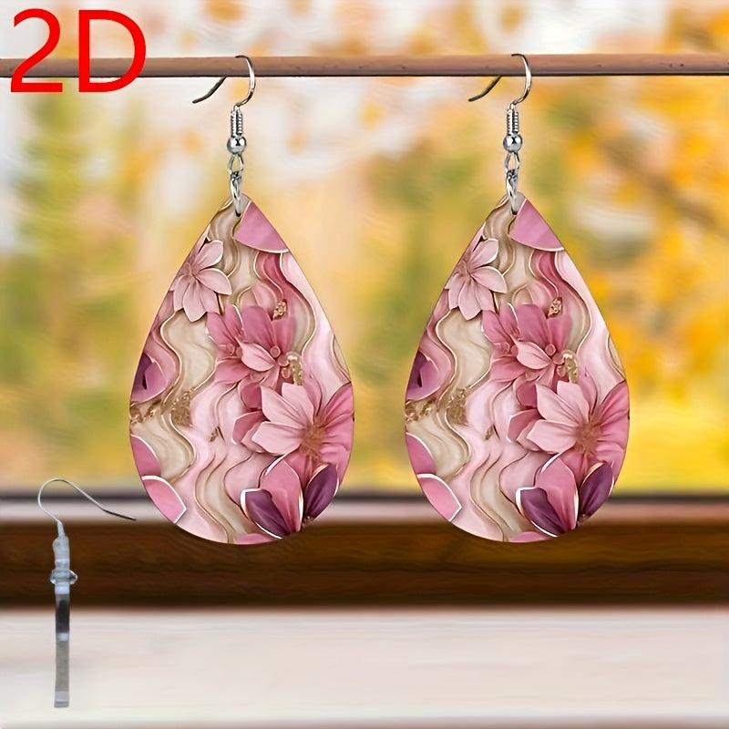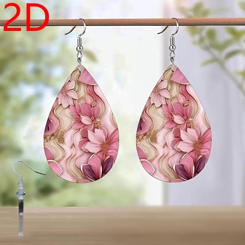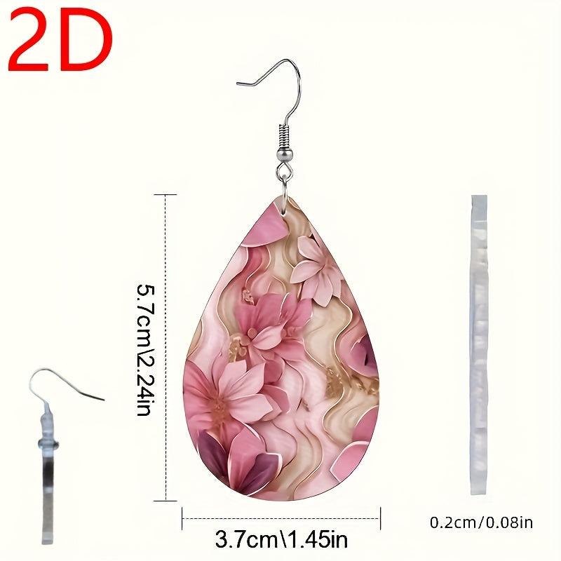 These fashionable 2D flat acrylic earrings feature a romantic pink flower design. Perfect for Halloween, Christmas, Valentine's, or anniversary gifts.