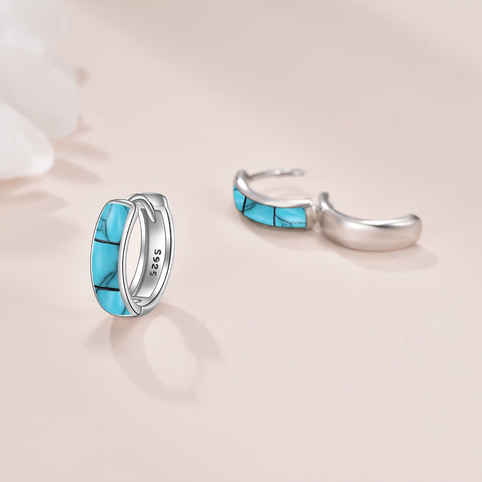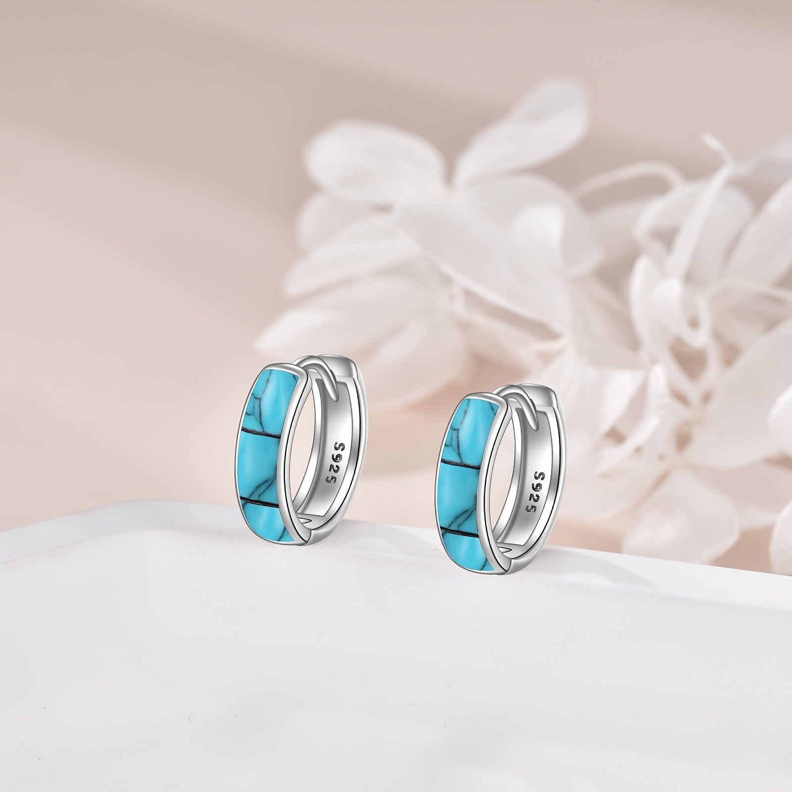 Add a touch of elegance with these sterling silver Celtic hoop earrings featuring synthetic turquoise. Perfect for everyday wear or special occasions.
