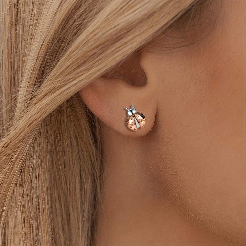 These lucky ladybug stud earrings feature open-close wing design in multicolor. Made of 925 silver, they make a perfect birthday gift for women.