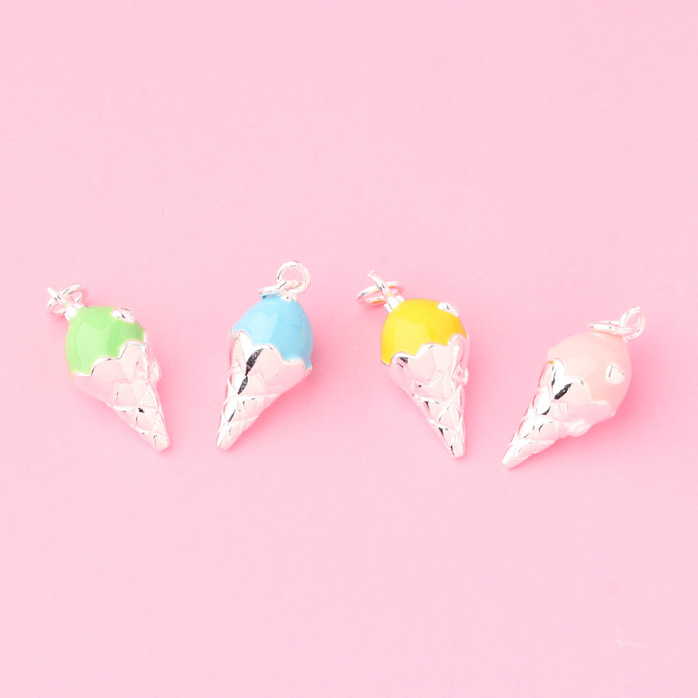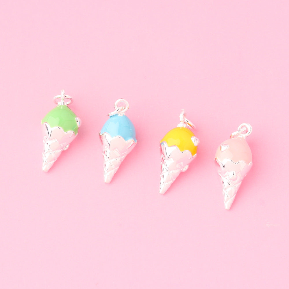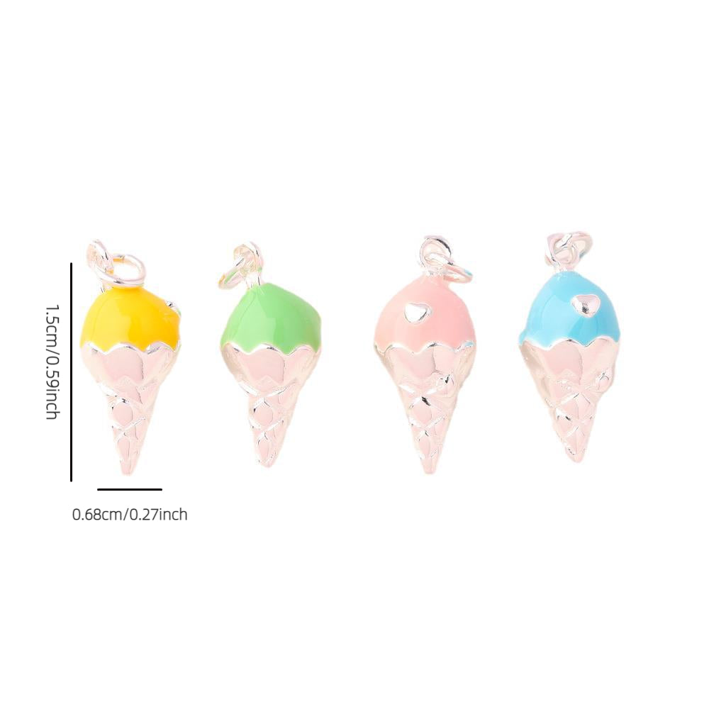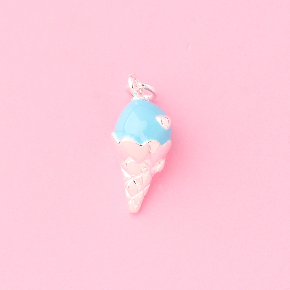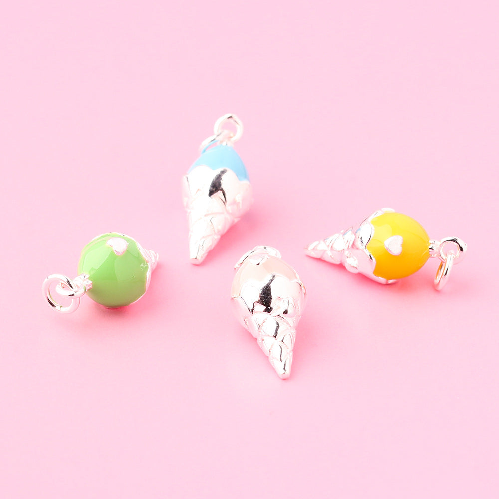 This charming S925 silver pendant features a colorful ice cream cone design with drop glaze beads, perfect for DIY jewelry making supplies.