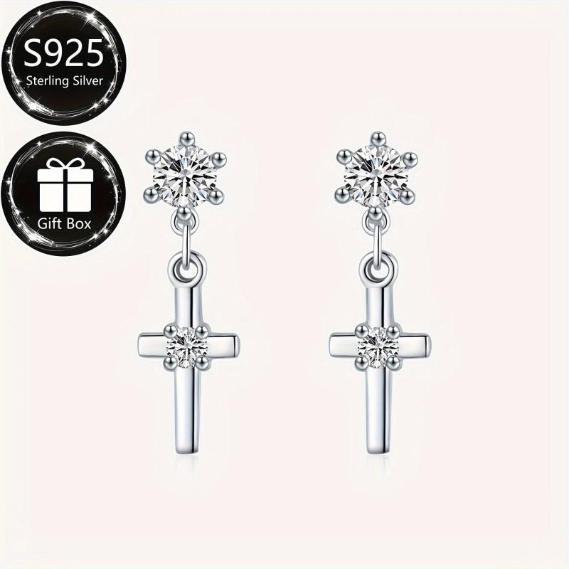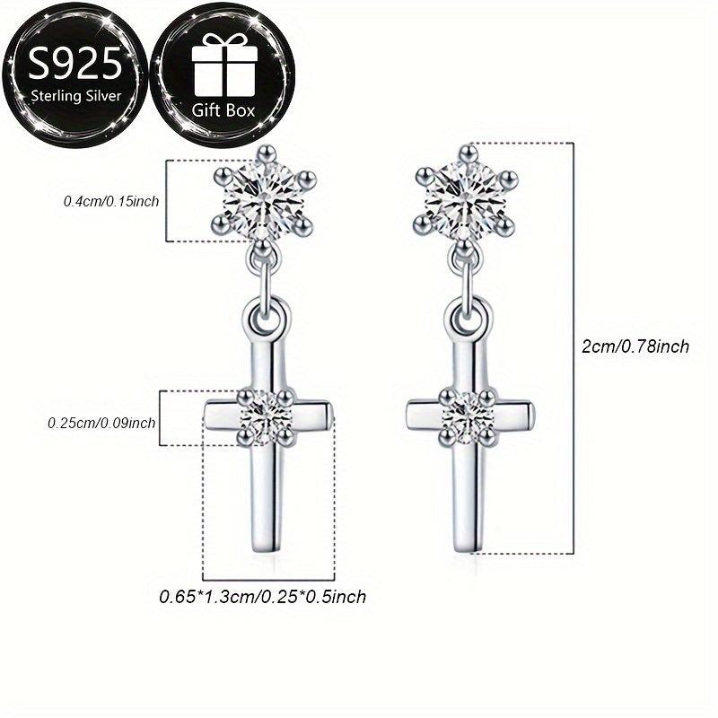 S925 Silver Cross Pendant Earrings with Zirconia for Wedding Party