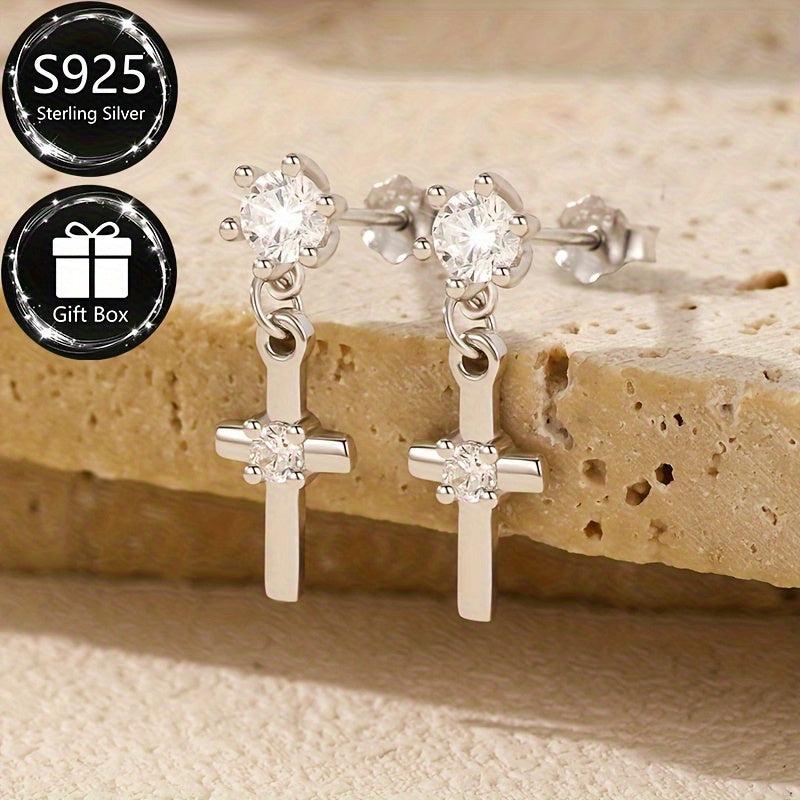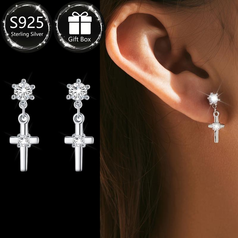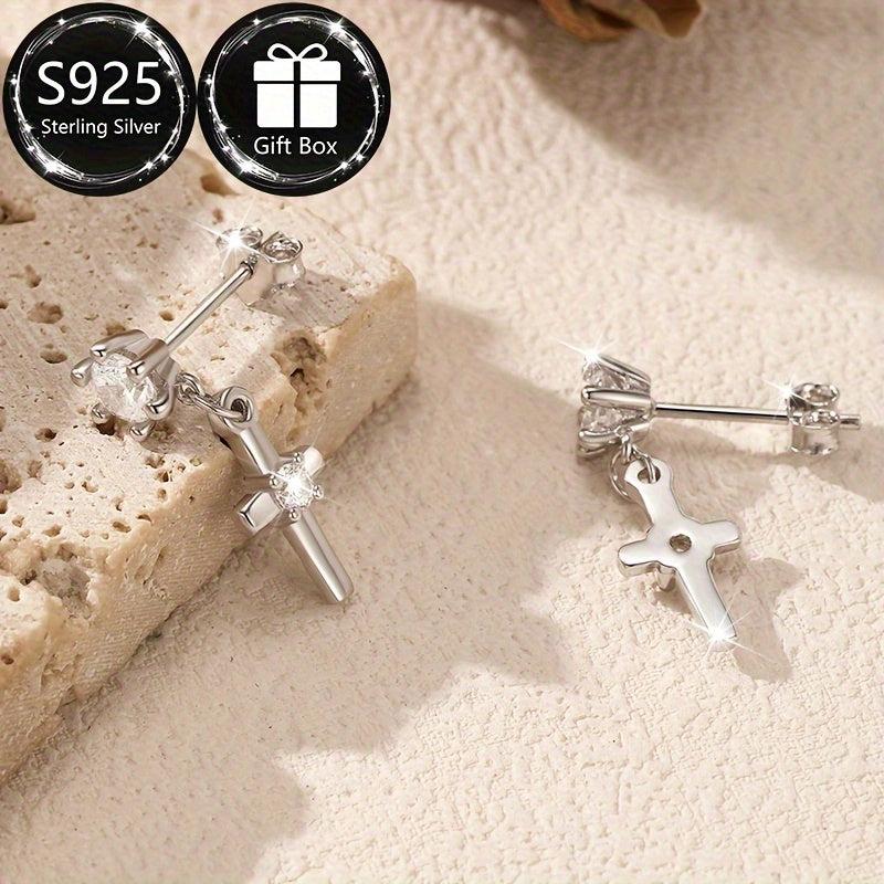 These retro cross earrings are made of hypoallergenic S925 silver and feature synthetic zirconia for a touch of elegance. Perfect for weddings and parties.