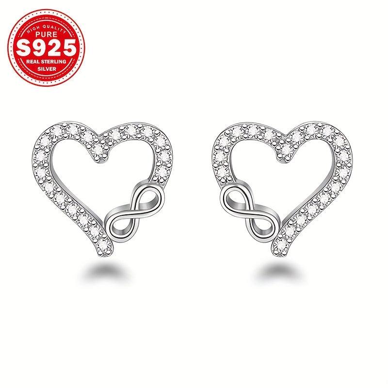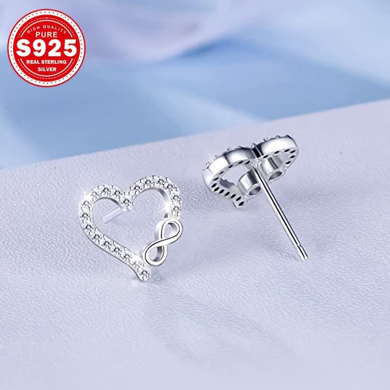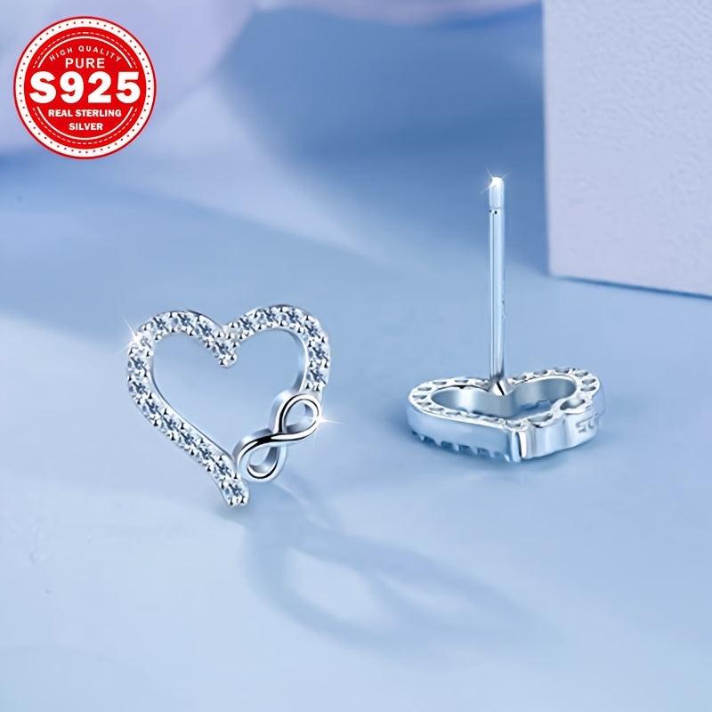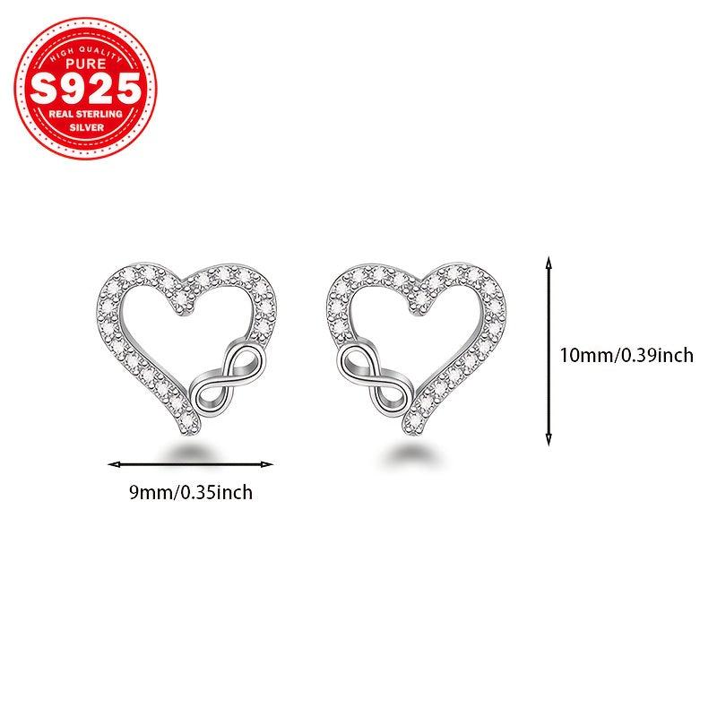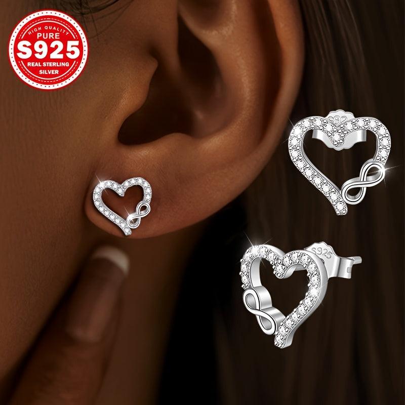 S925 Silver Heart Dangle Earrings with CZ, Low Allergy, 0.01g, Ideal Gift