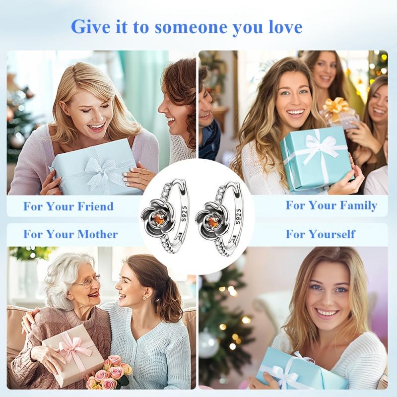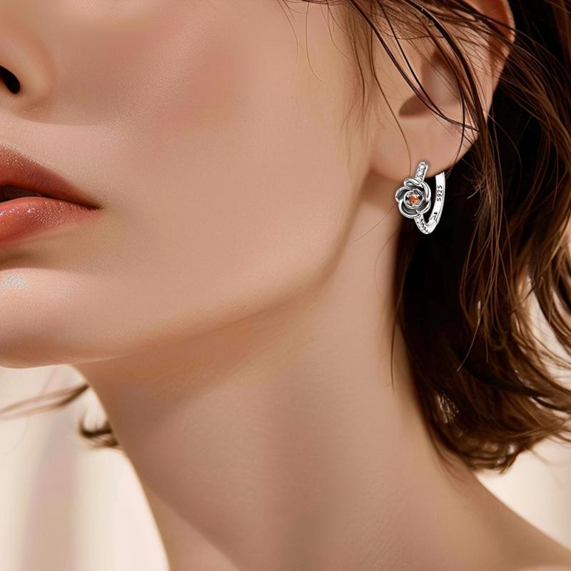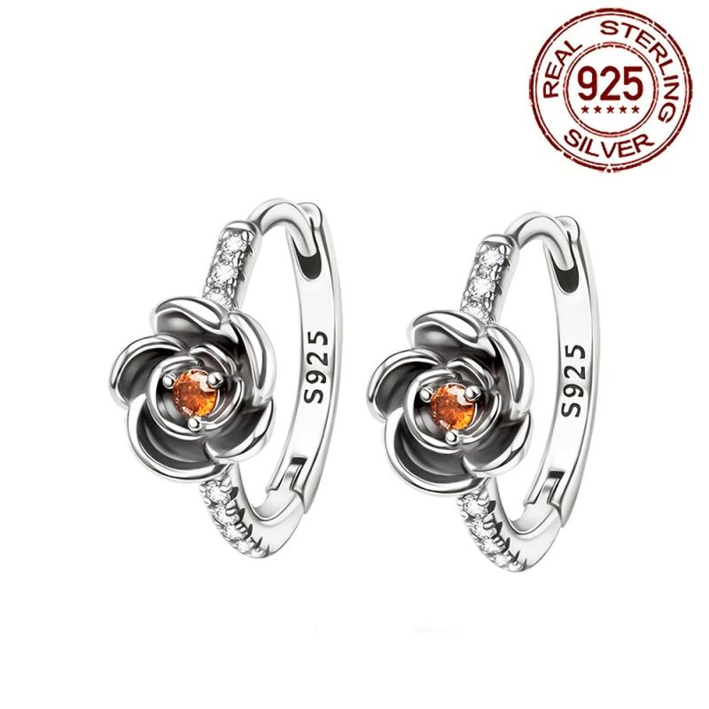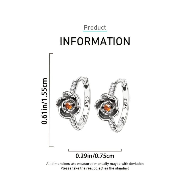 These elegant hoop earrings are made from hypoallergenic S925 silver, featuring a beautiful rose design. They are lightweight at 0.092Oz (2.6g) and perfect for sensitive ears.