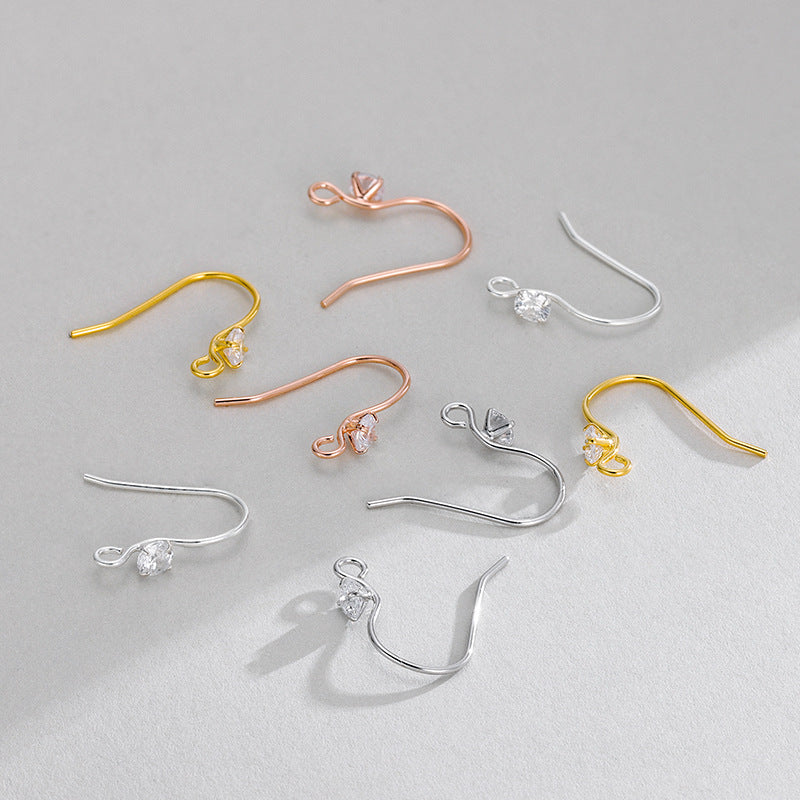 S925 Silver Inlaid Rhinestone Ear Hook Golden Plated Jewelry