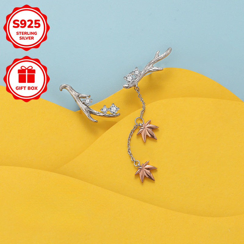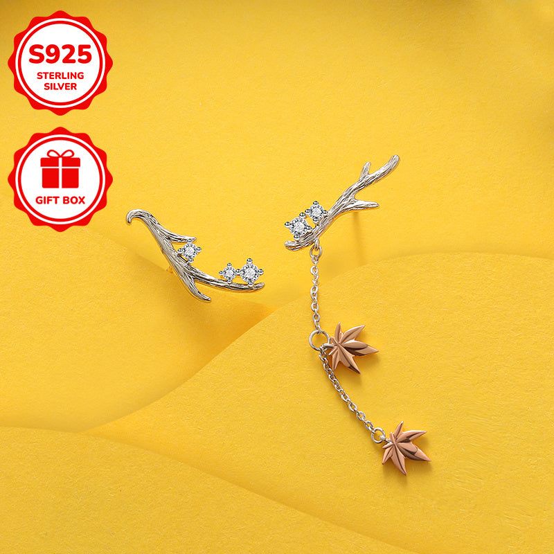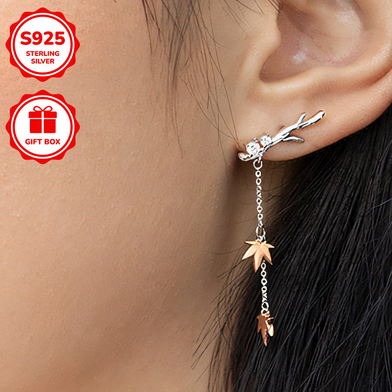 Add a touch of elegance with these dainty S925 sterling silver maple leaf dangle earrings. Perfect for everyday wear or special occasions.