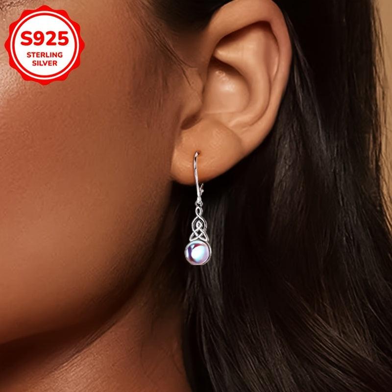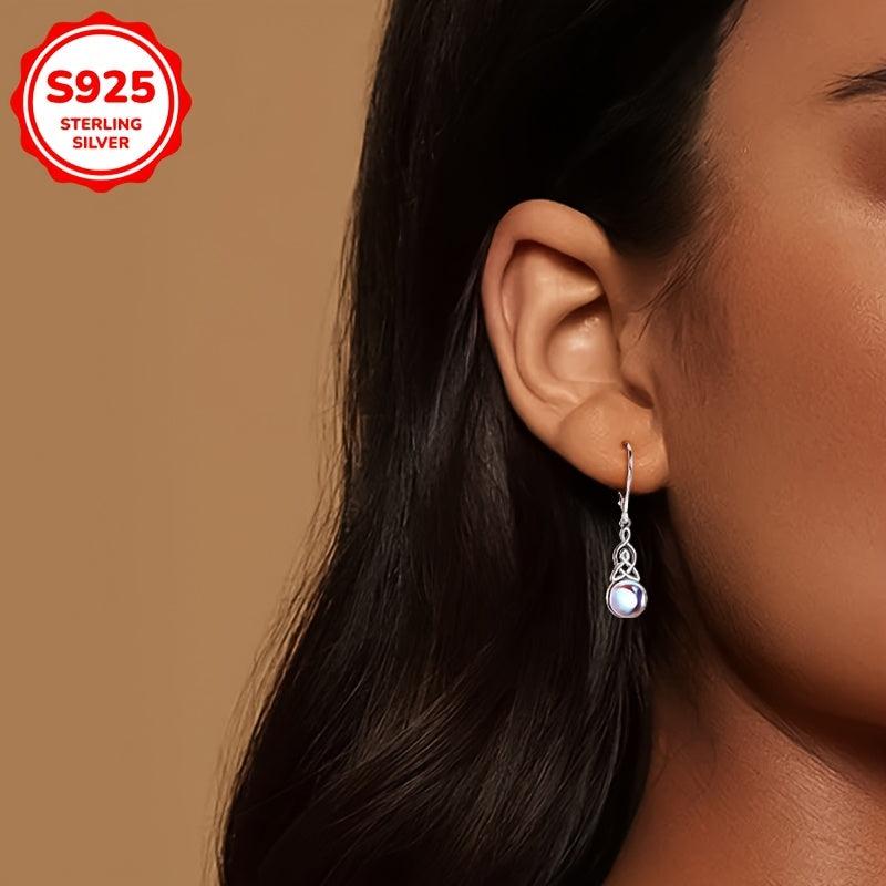These stylish earrings are made of S925 silver and feature a moonstone pattern design. They are lightweight and perfect for daily wear, adding a touch of elegance to any outfit.