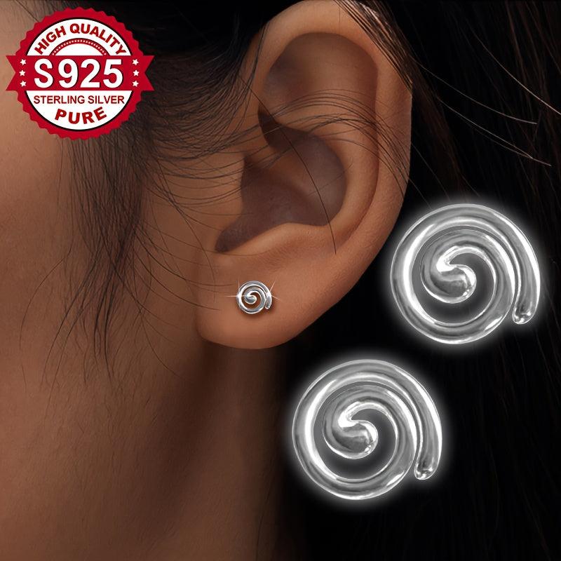 S925 Silver Spiral Snail Earrings for Women's Parties and Club Wear