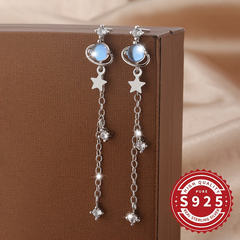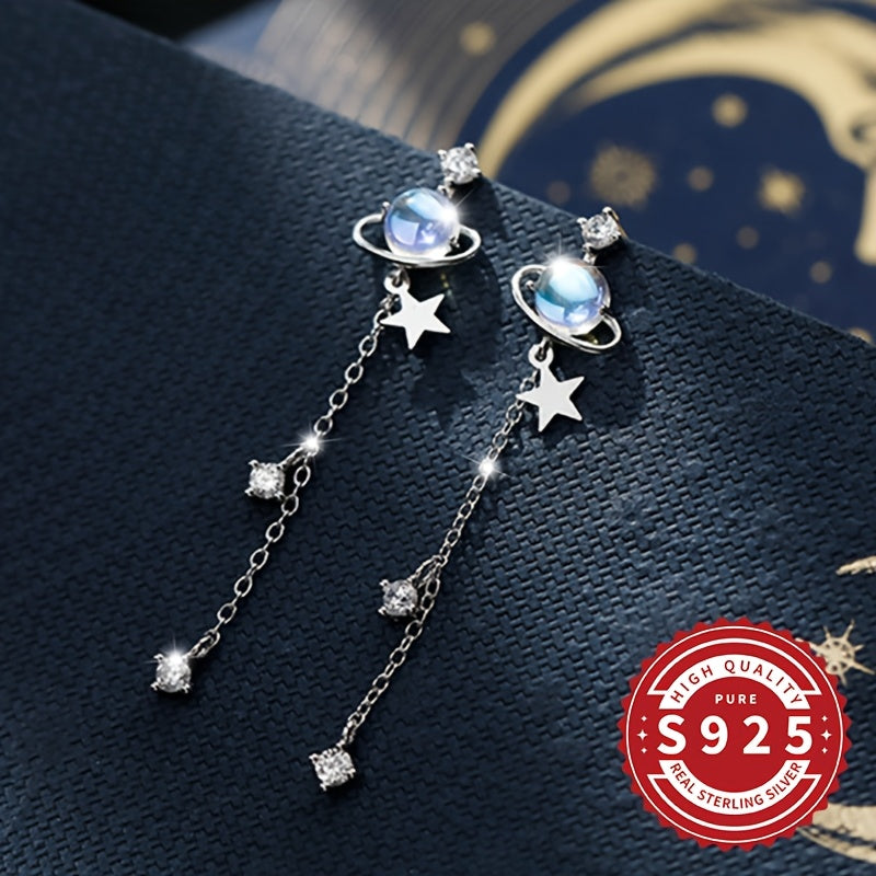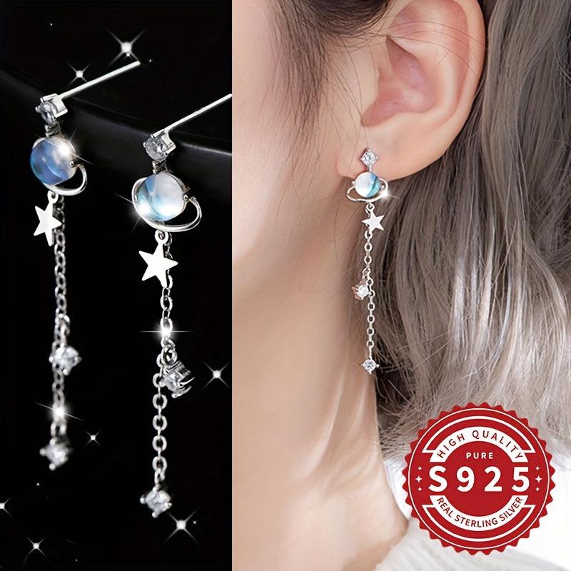 S925 Silver Women's Shining Planet Earrings - Unique Design for Daily Wear