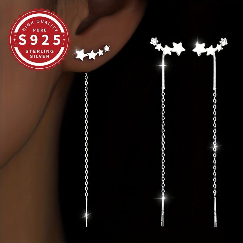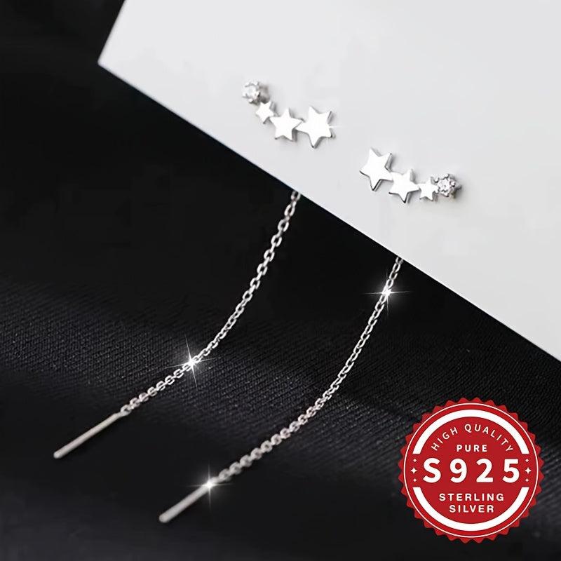 S925 Silver Women's Star Linked Earrings