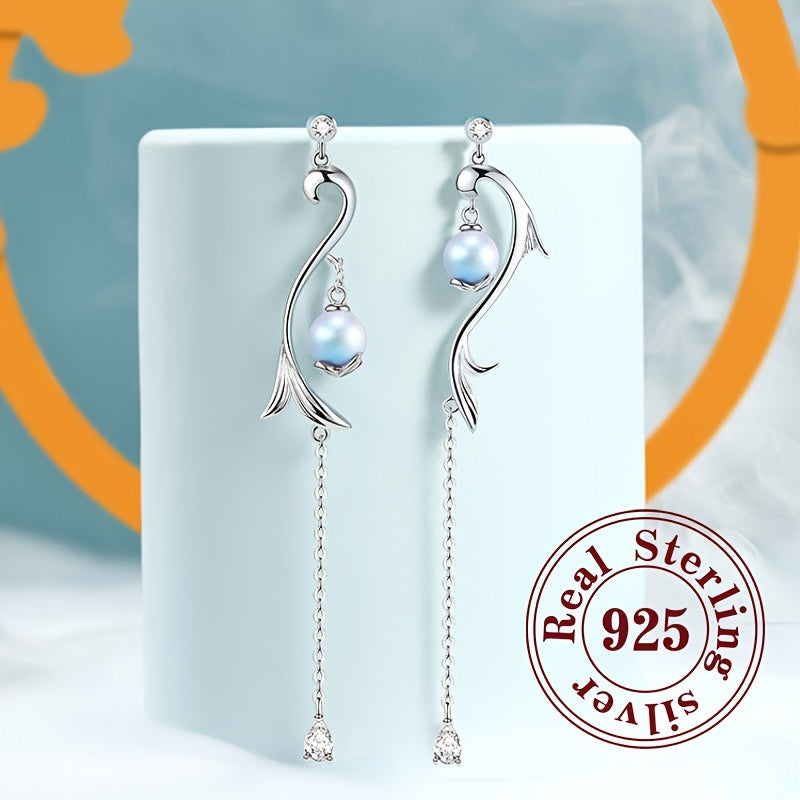 These elegant S925 silvery earrings feature a long pendant design with a hypoallergenic needle. Perfect for a minimalist and cold style, ideal as a Christmas gift for your girlfriend.