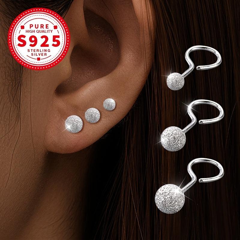 S925 Silvery Frosted Hook Earrings for Men & Women