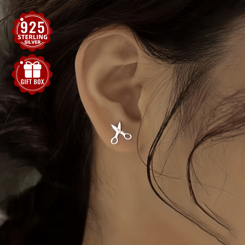 These S925 pure silvery small scissor earrings are perfect for women who appreciate a light and stylish accessory. Each earring weighs approximately 0.74g, adding a touch of elegance to any outfit.