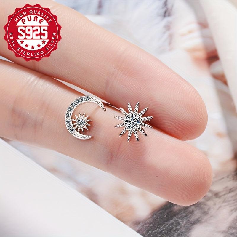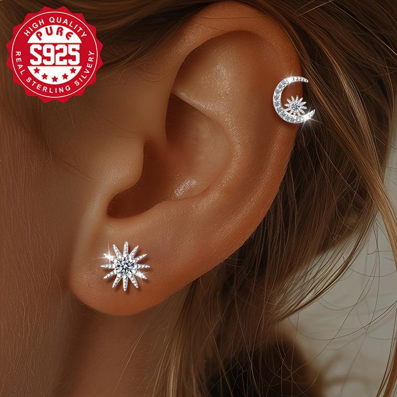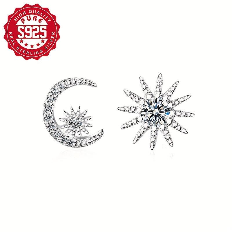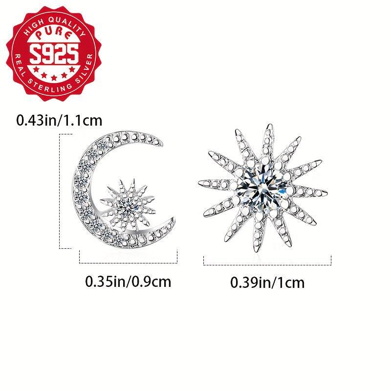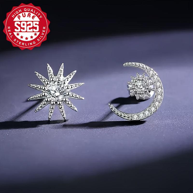 Add a touch of celestial charm to your outfit with this stunning set of asymmetrical earrings. Crafted from S925 silver and adorned with sparkling zirconia, these earrings feature a star and moon design that will elevate any look.