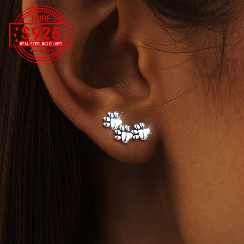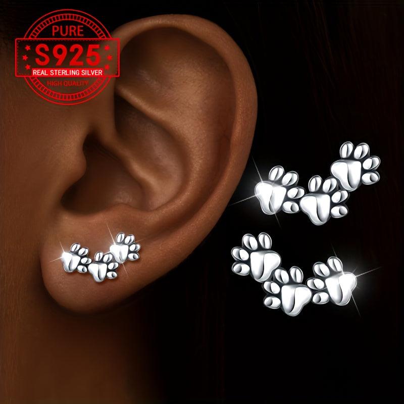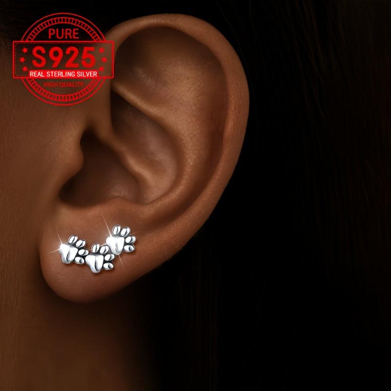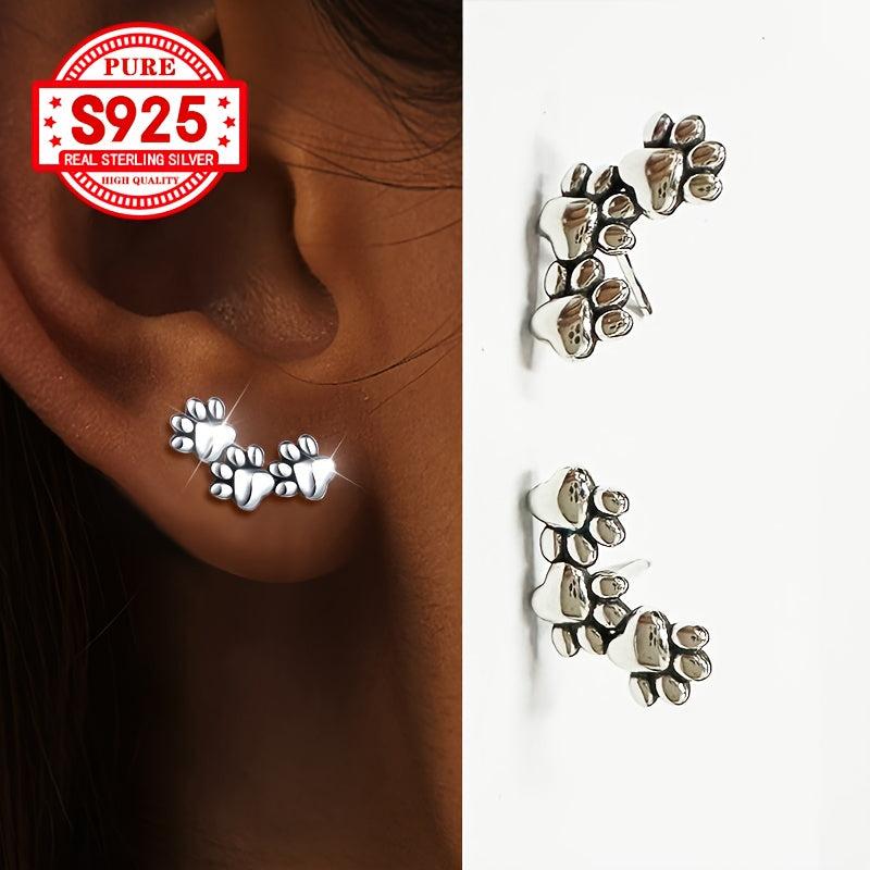 S925 Sterling Silver Animal Paw Stud Earrings Hypoallergenic Jewelry for Women