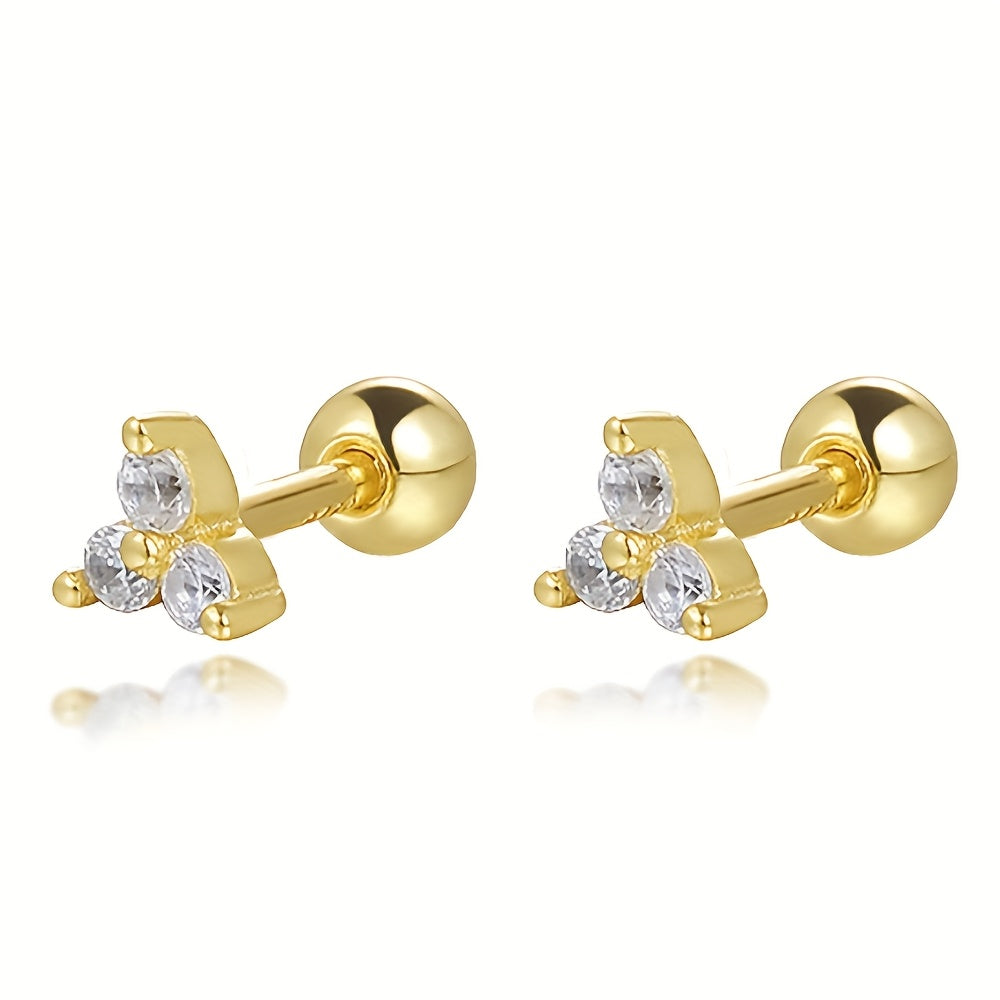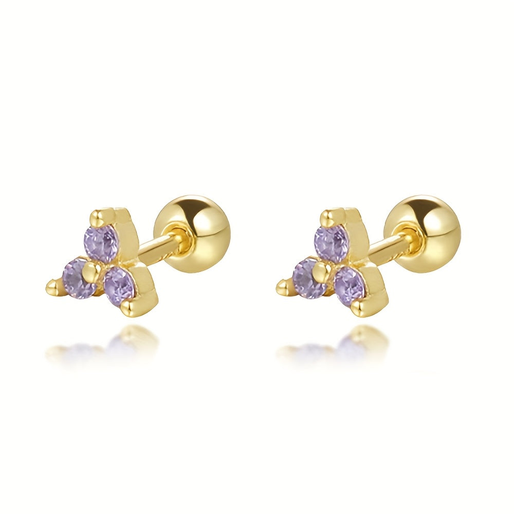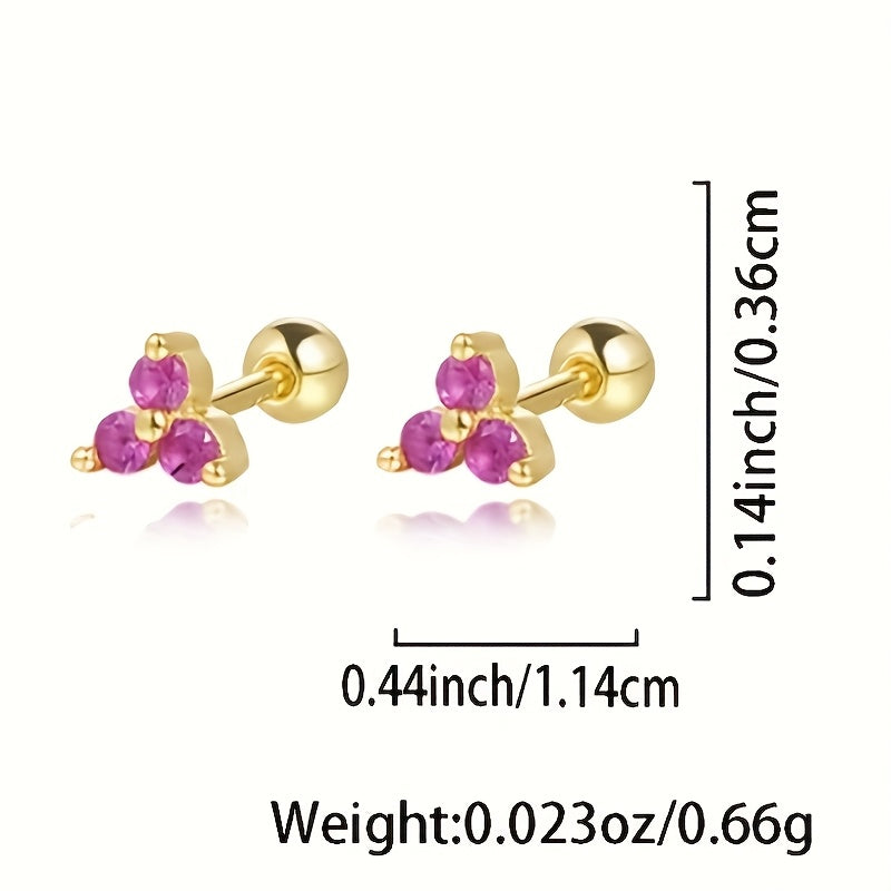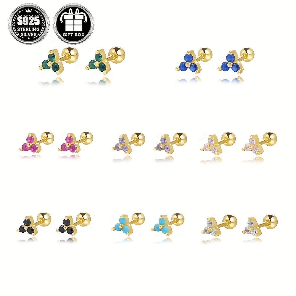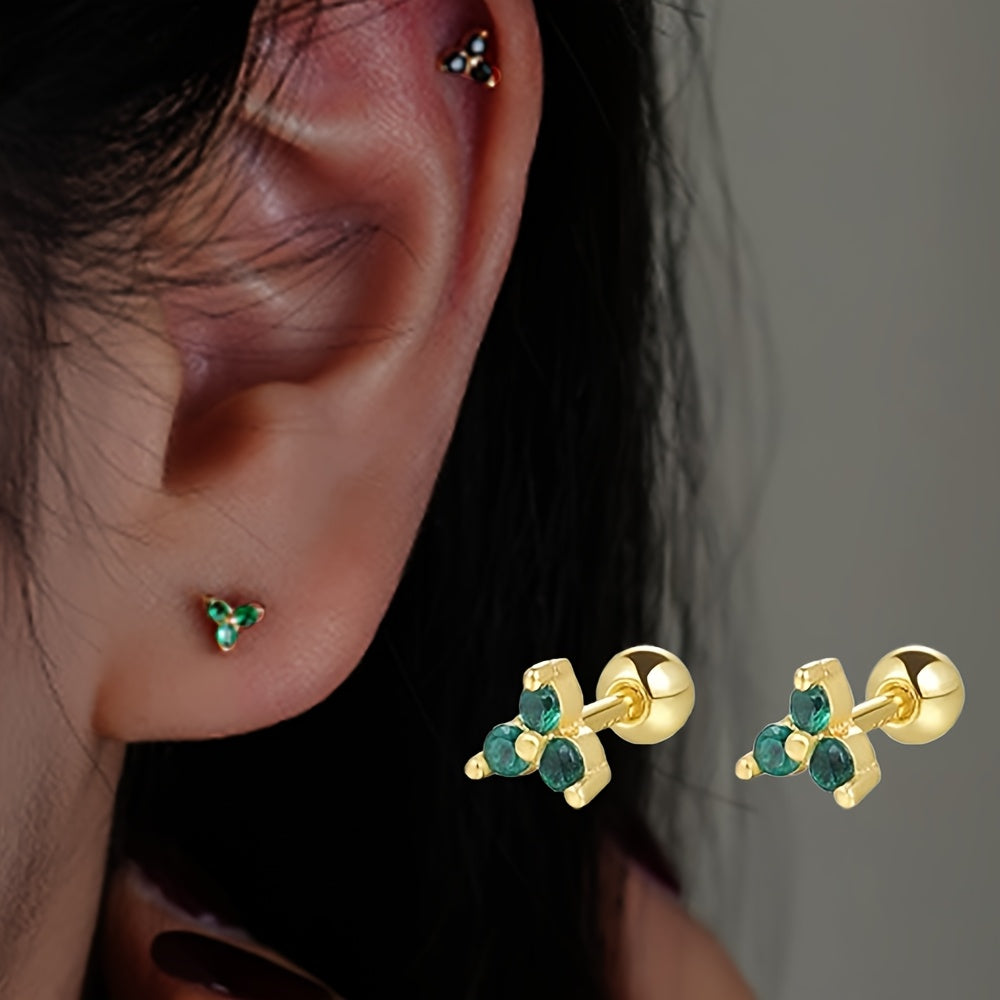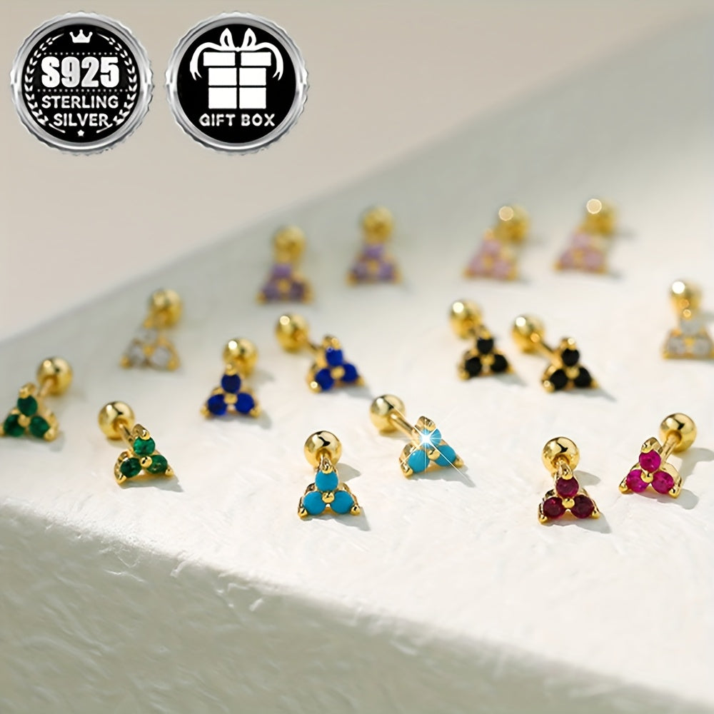 S925 Sterling Silver Clover Shaped Earrings with Colorful Cubic Zirconia