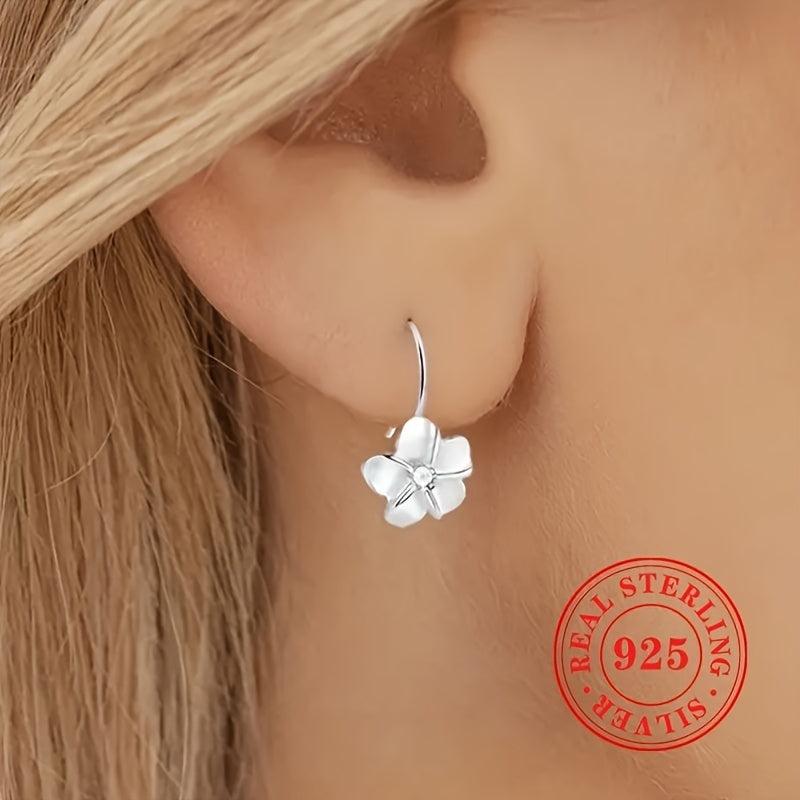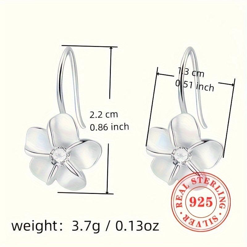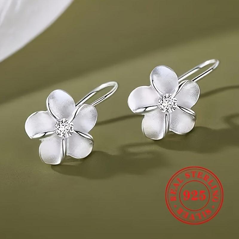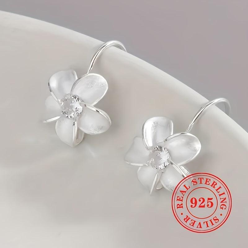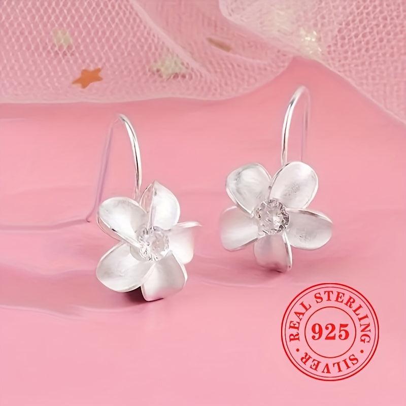 S925 Sterling Silver Flower Dangle Earrings with Zirconia, Daily Party Jewelry