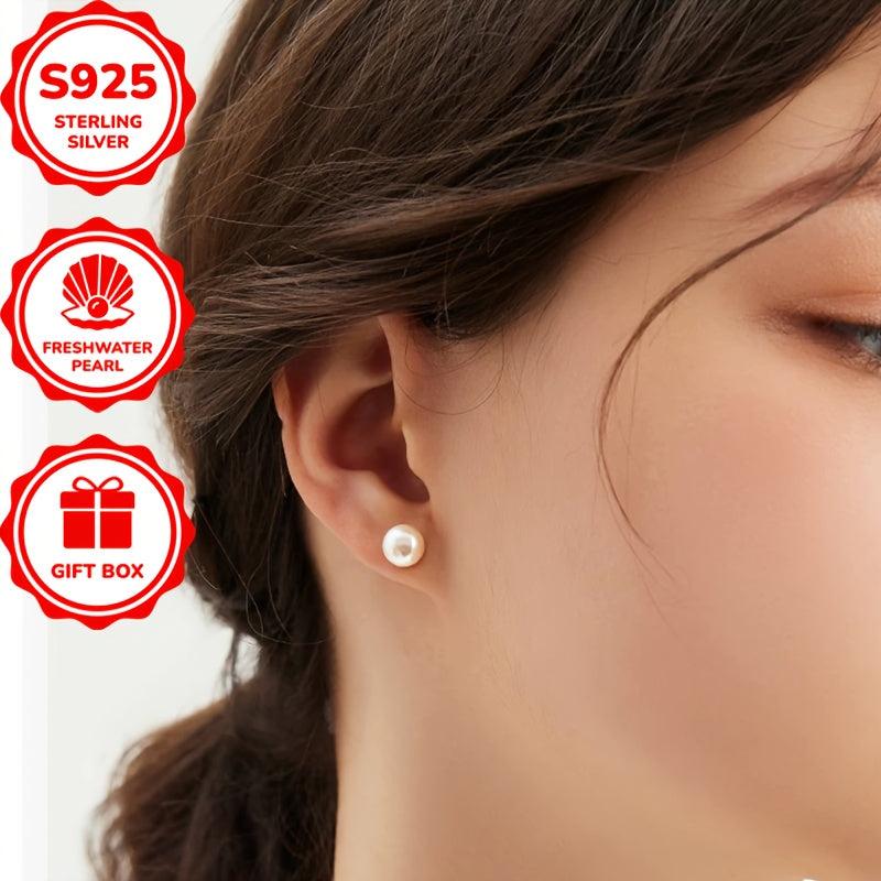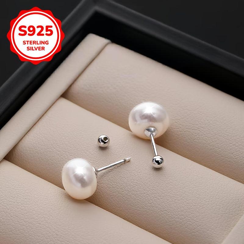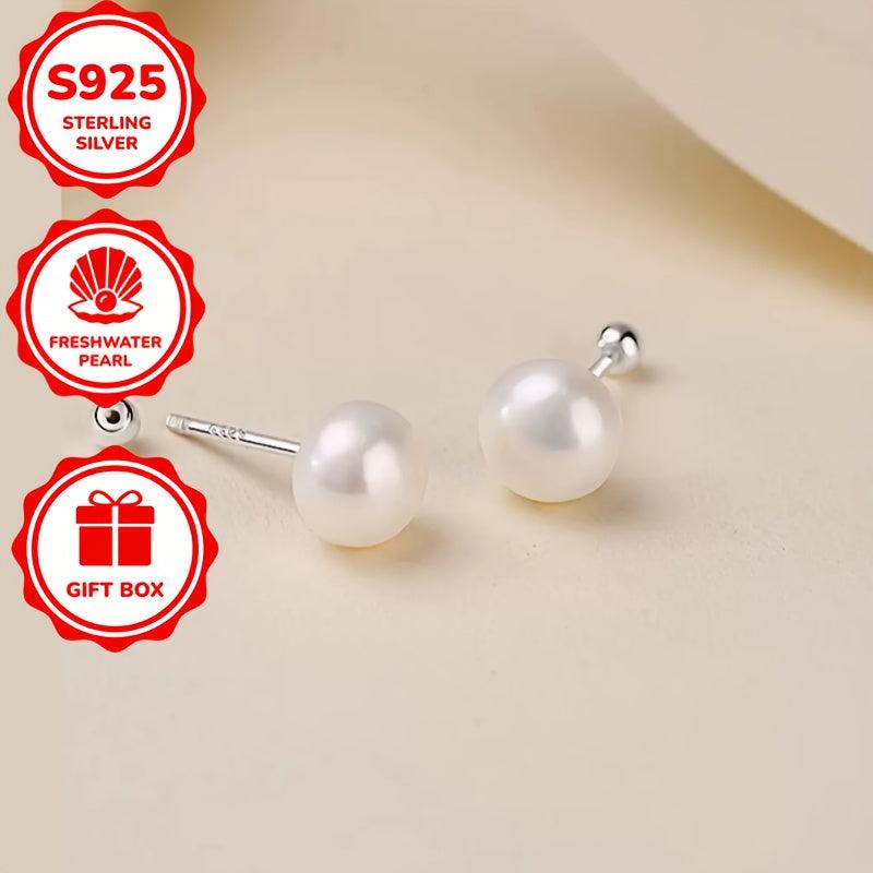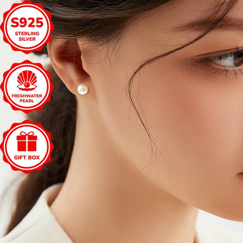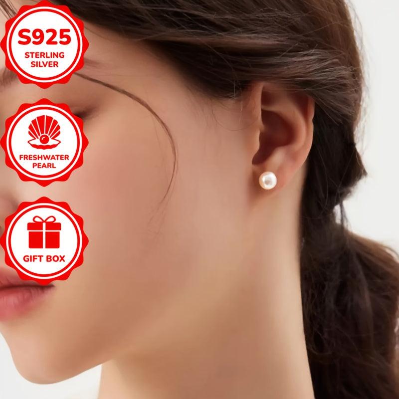 Elegant and stylish S925 sterling silver earrings with natural freshwater pearls. Hypoallergenic, no need to remove for sleep. Fashionable ear bone studs style.