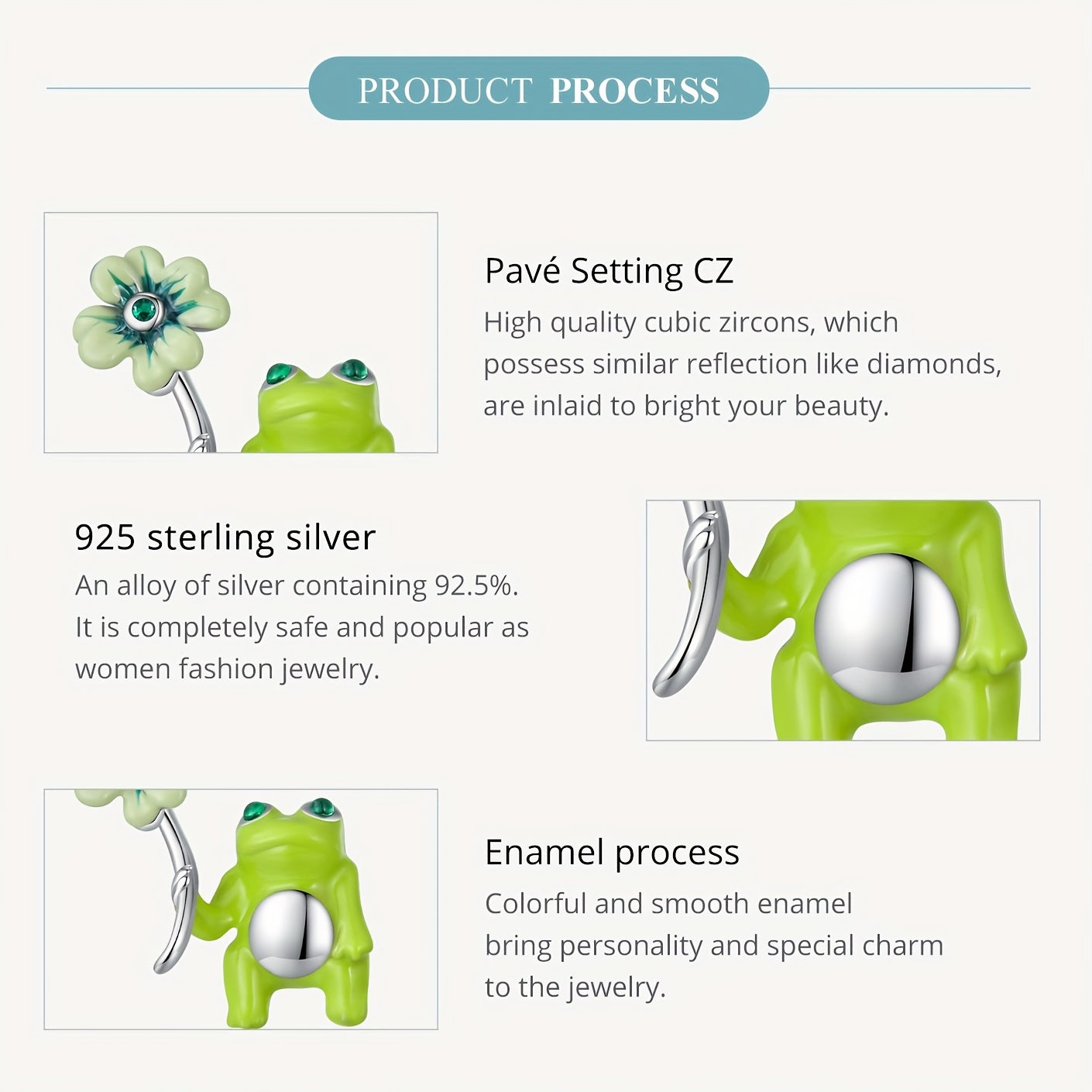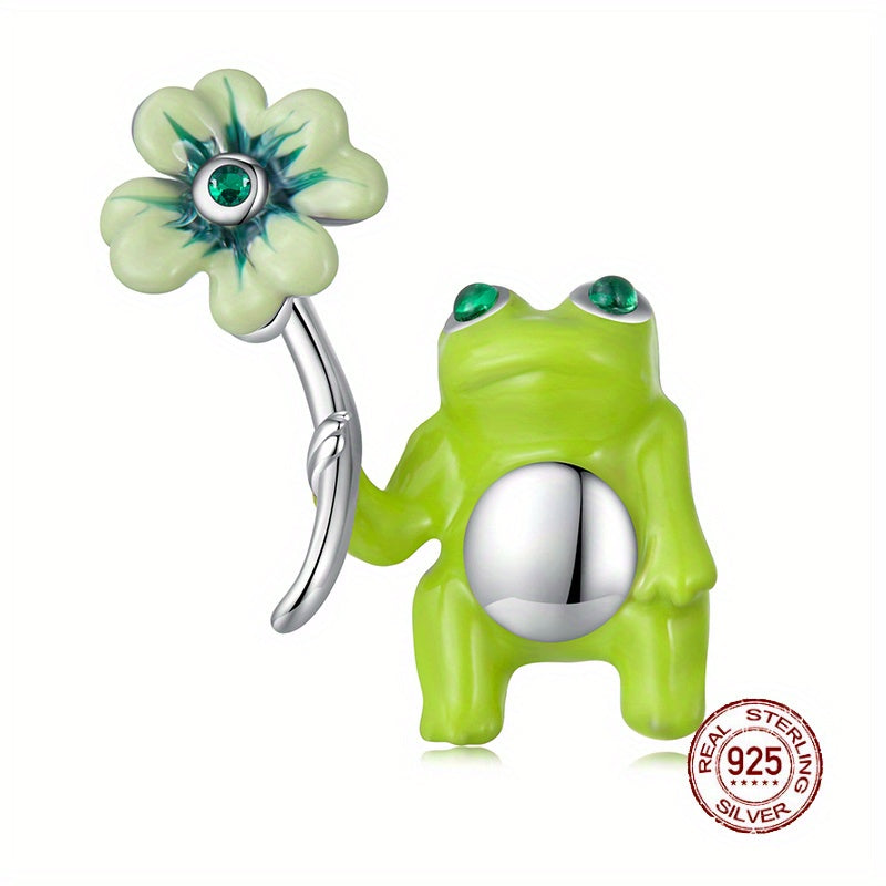 Add a touch of whimsy to your bracelet with this S925 sterling silver frog clover beaded charm. Create a unique piece of jewelry that reflects your style and personality.