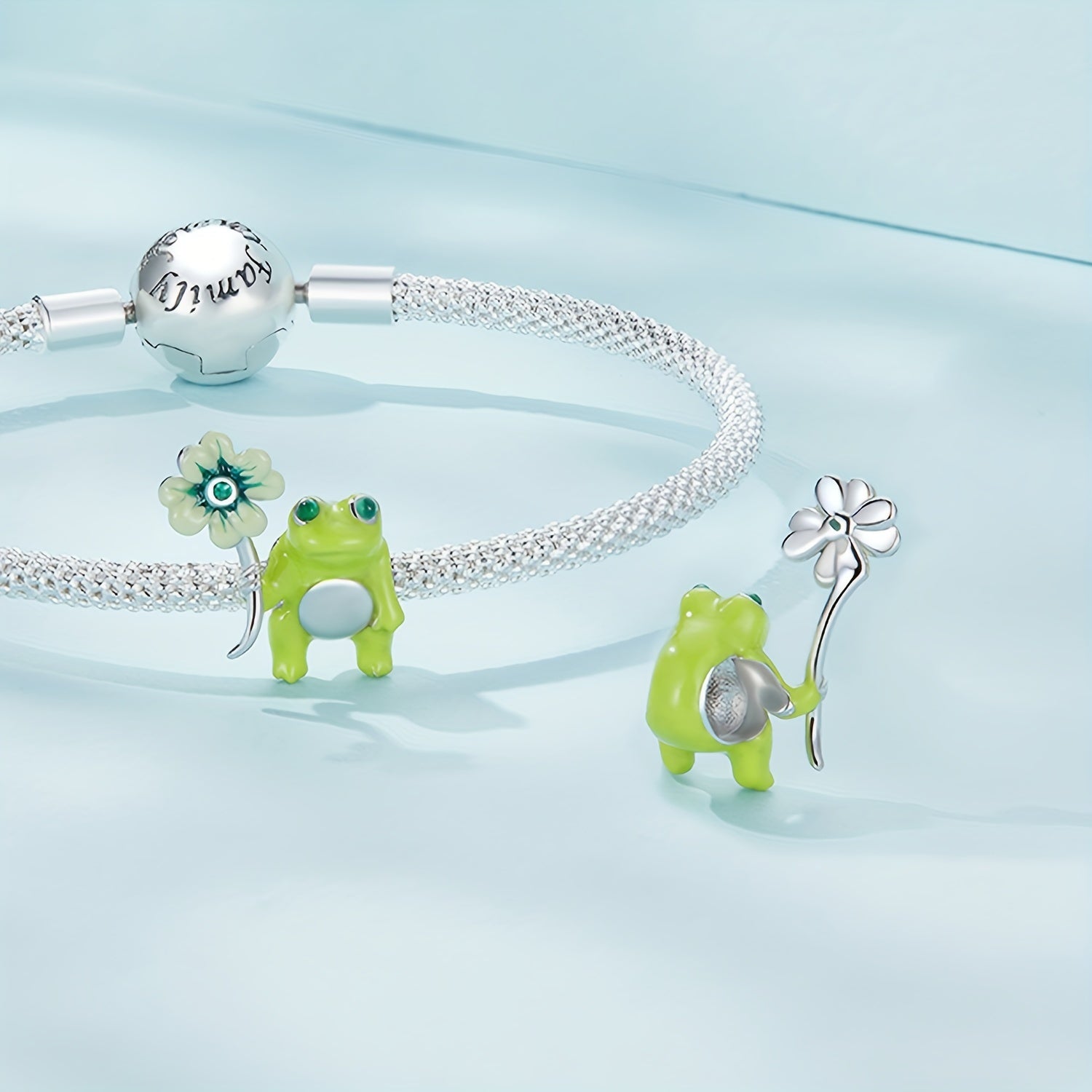S925 Sterling Silver Frog Clover Beaded Charm DIY Bracelet Jewelry