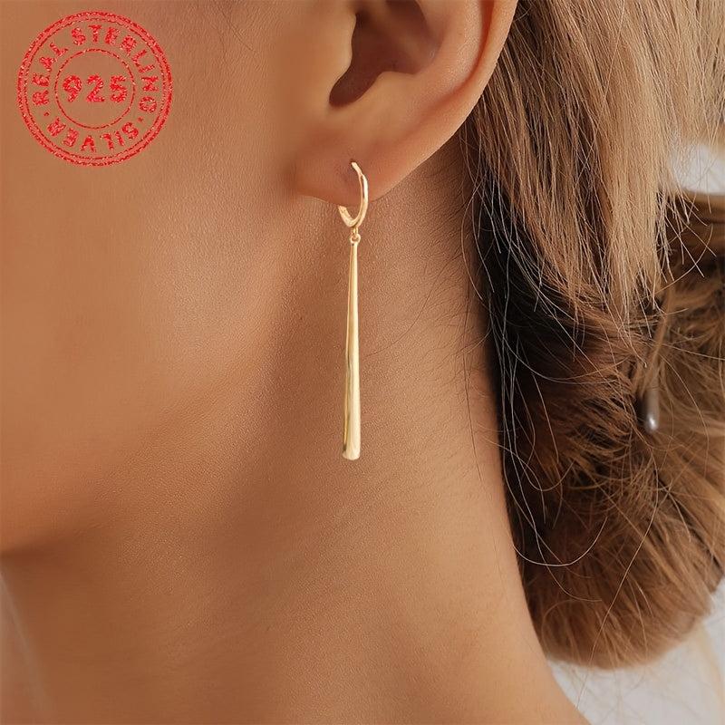 S925 Sterling Silver Long Drop Earrings Vintage Waterdrop Hook Closure