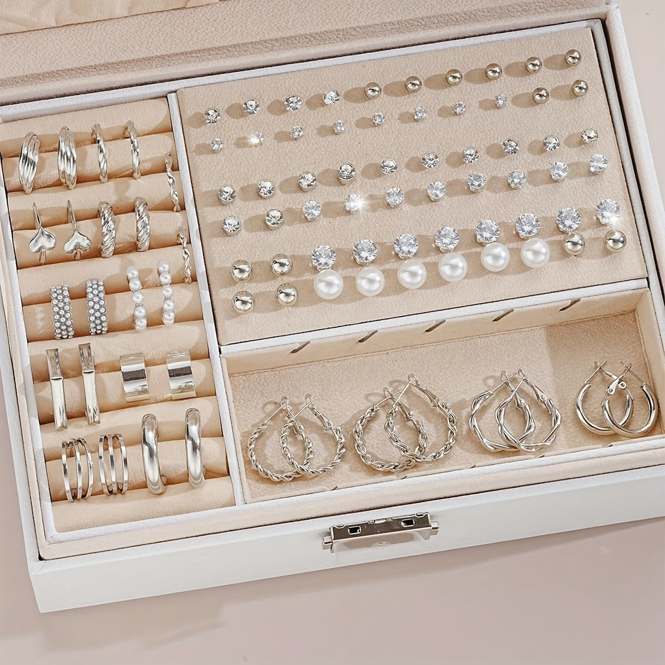 This set includes 102 pieces of stylish and stud earrings, hoop earrings, and multiple sets for girls to wear daily as fashionable accessories without box.