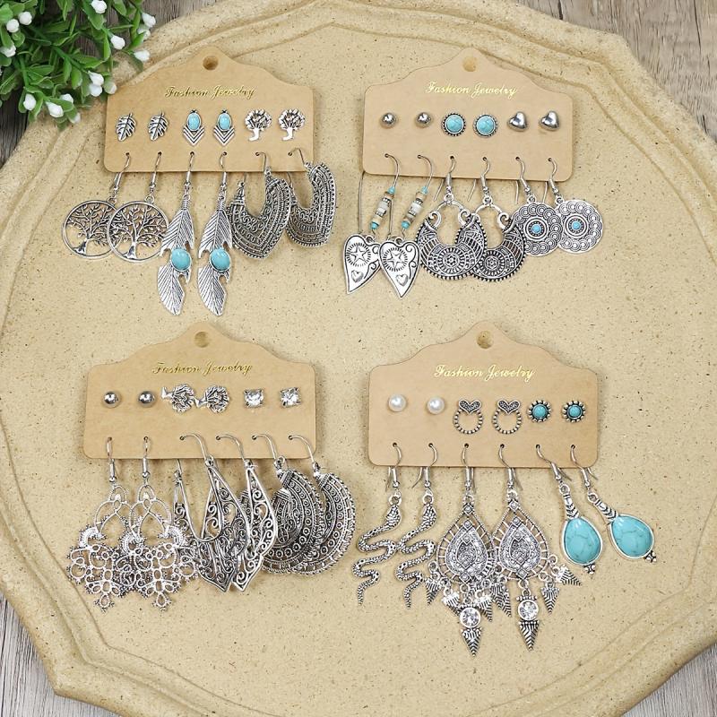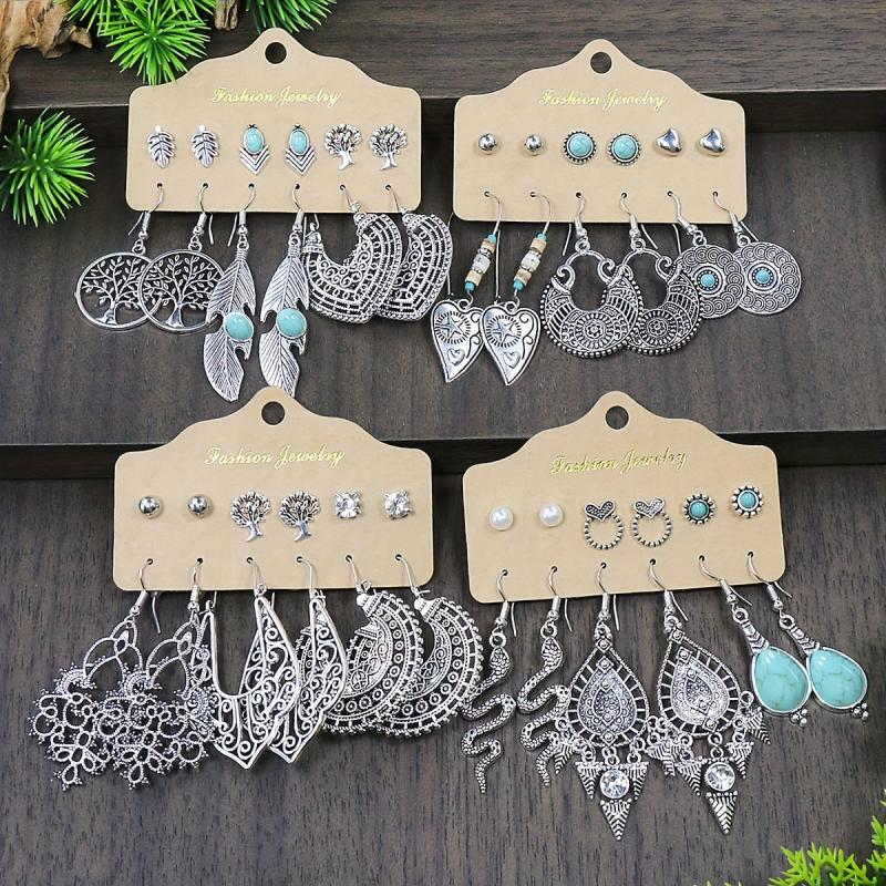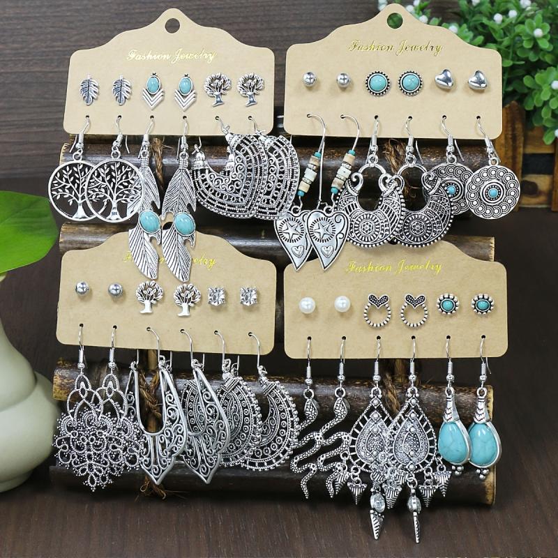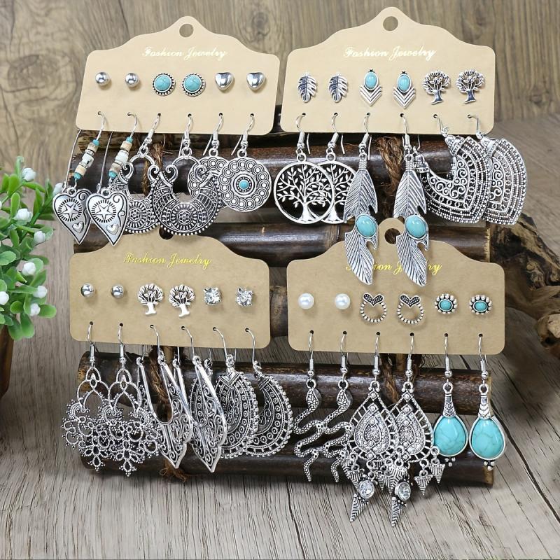 Elevate your style with this set of 24 antique hollow zinc alloy earrings. Perfect for daily wear or vacation outfits, these earrings feature an iron ear needle for a secure fit.