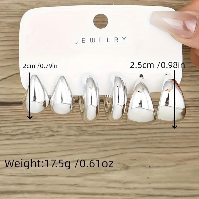 Stay stylish with this set of 6 circular minimalist earrings, perfect for daily wear or as a gift. With a unique design, these earrings will add a touch of elegance to any outfit.
