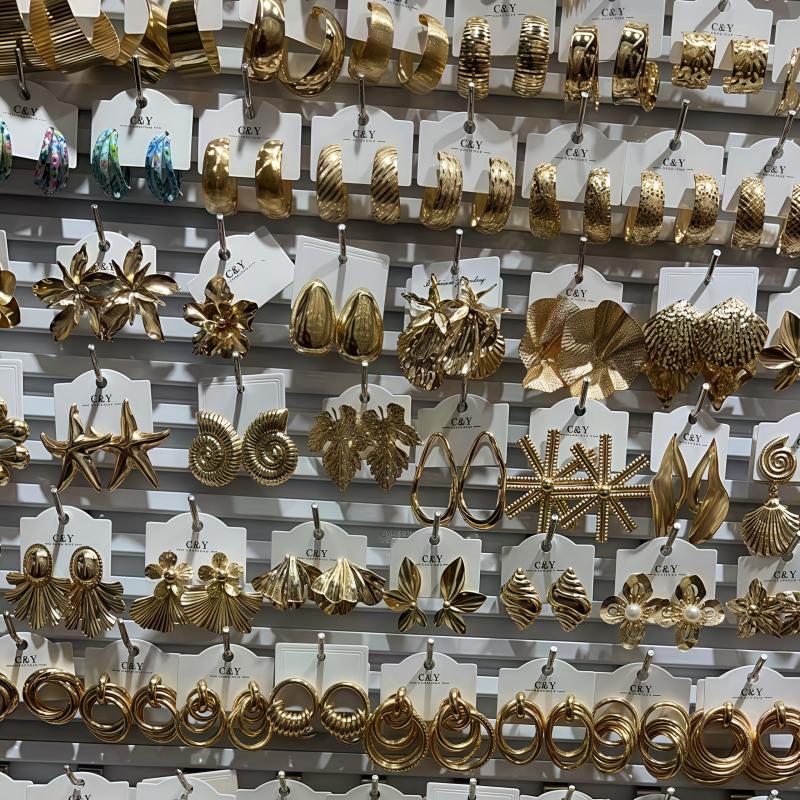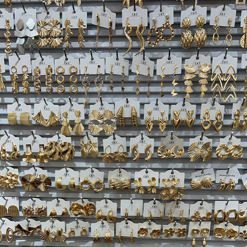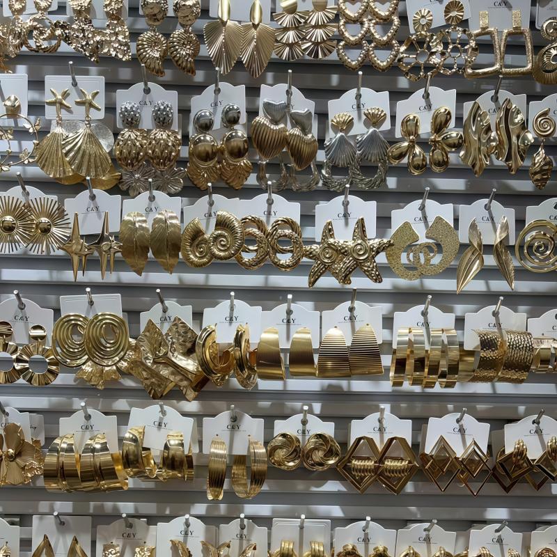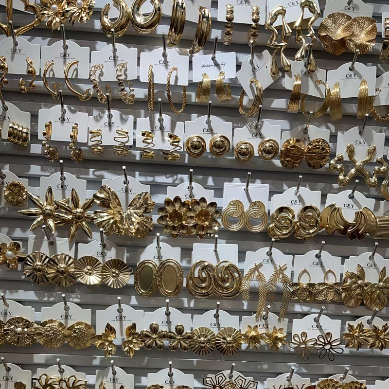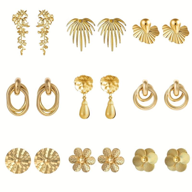 Elevate your style with this set of 6 unique golden earrings and ear studs. Perfect for adding a touch of glamour to any outfit.