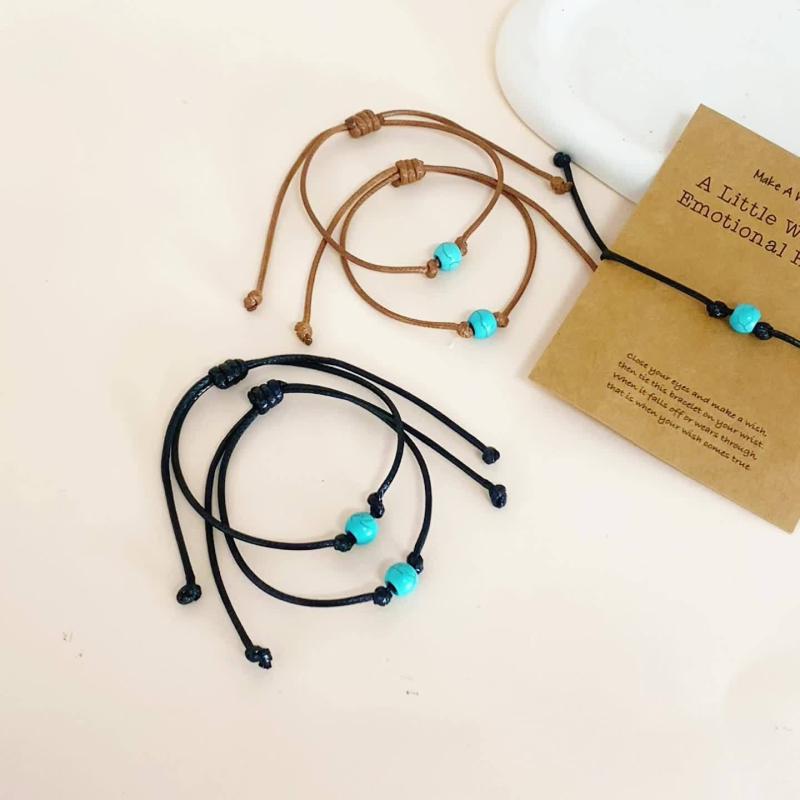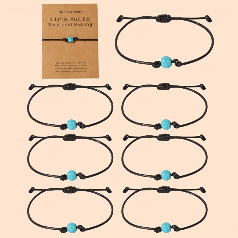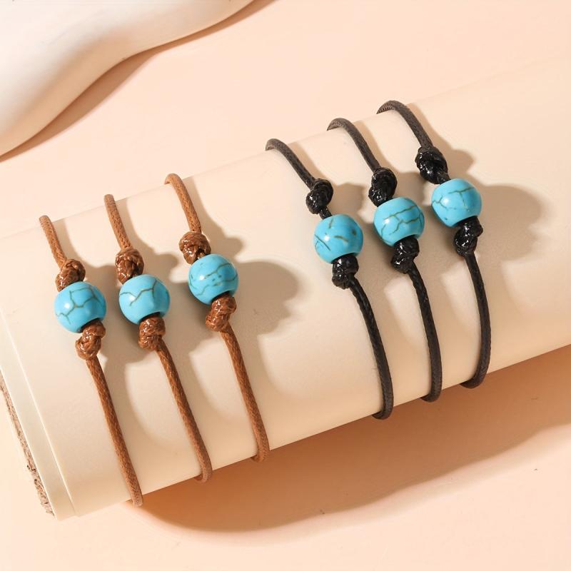 Vintage-inspired set of 6 minimalist woven bracelets in turquoise color, suitable for both men and women.