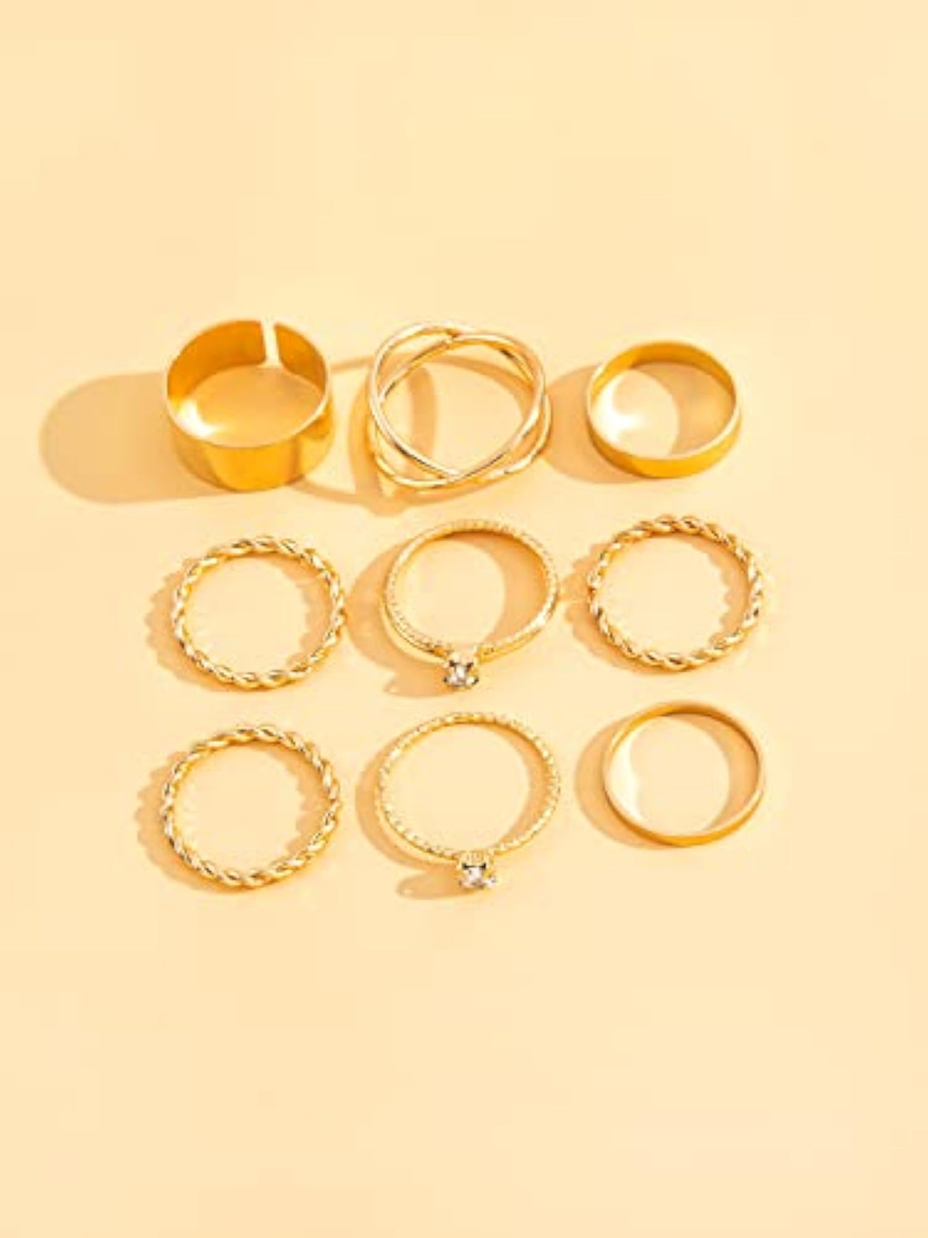 Enhance your boho style with this set of 9 metal midi finger rings. Perfect for stacking and mixing with your other rings.