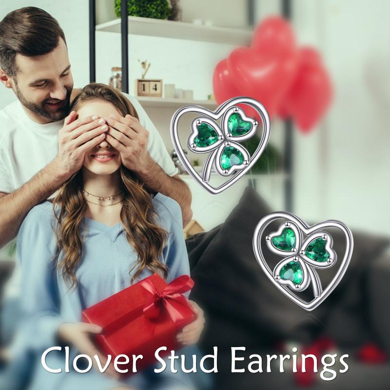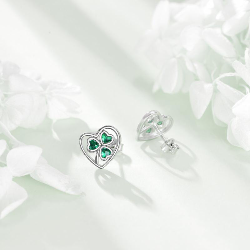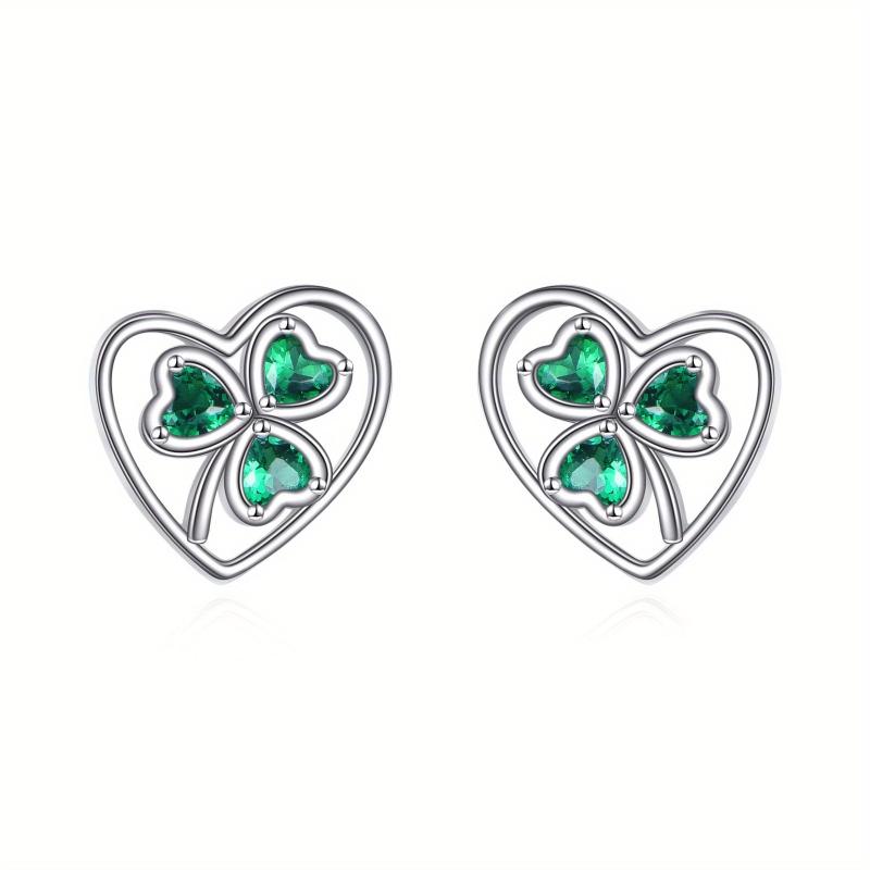 Shamrock Stud Earrings 925 Sterling Silver Green Clover Earrings