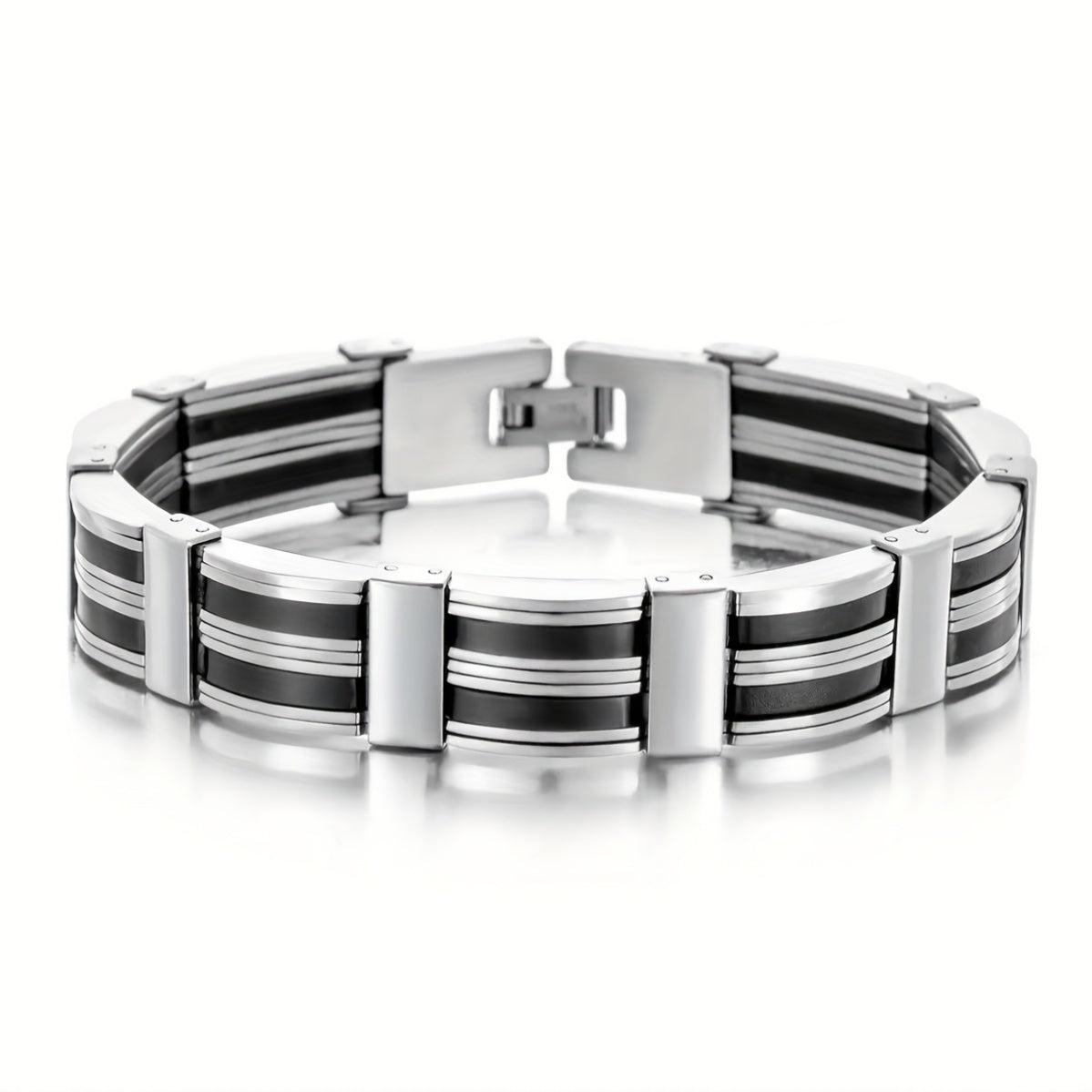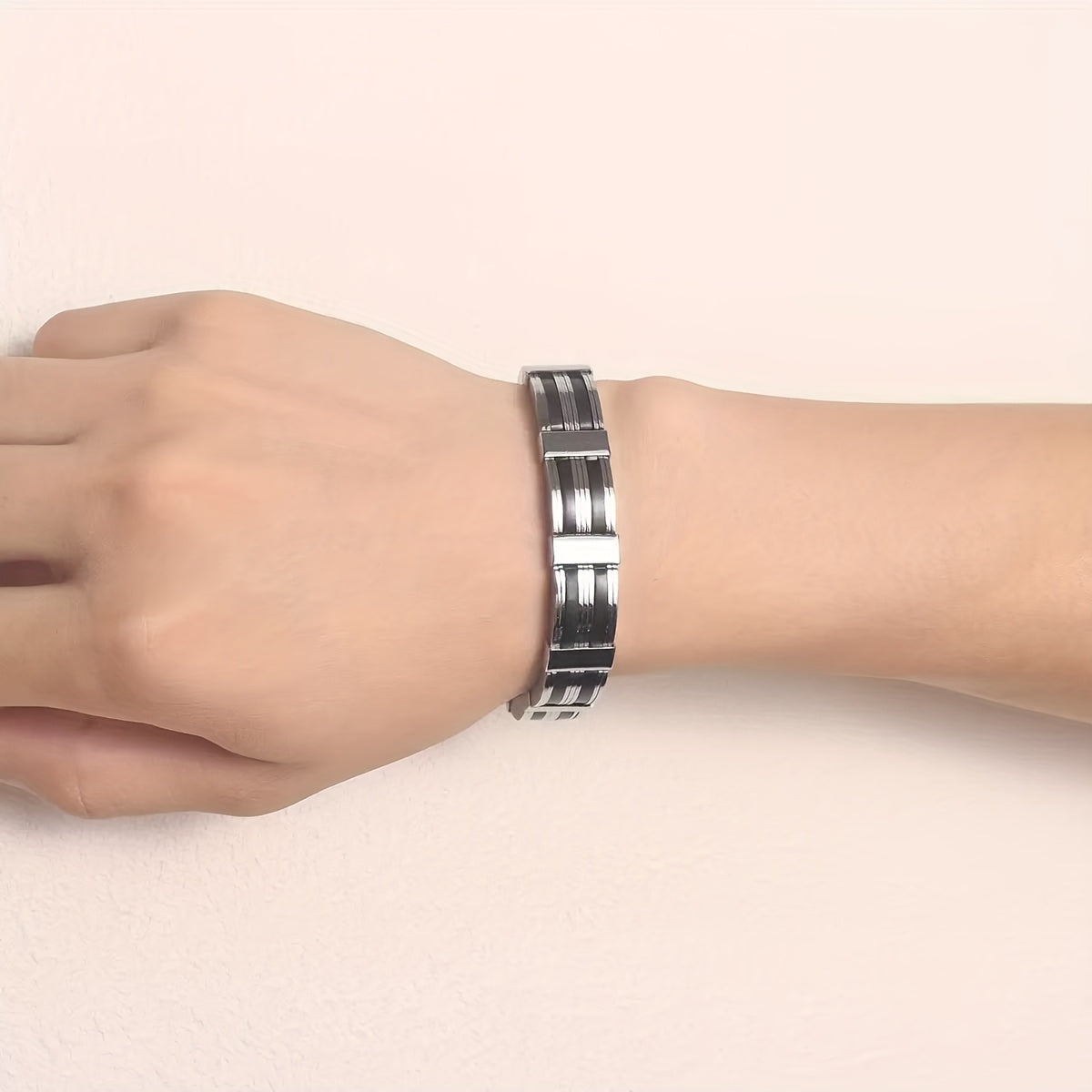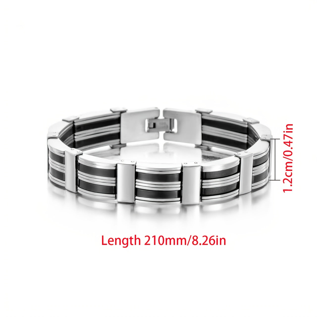 This stylish men's bracelet features a silicone band with a durable stainless steel clasp. It's a personalized and thoughtful gift for fathers.