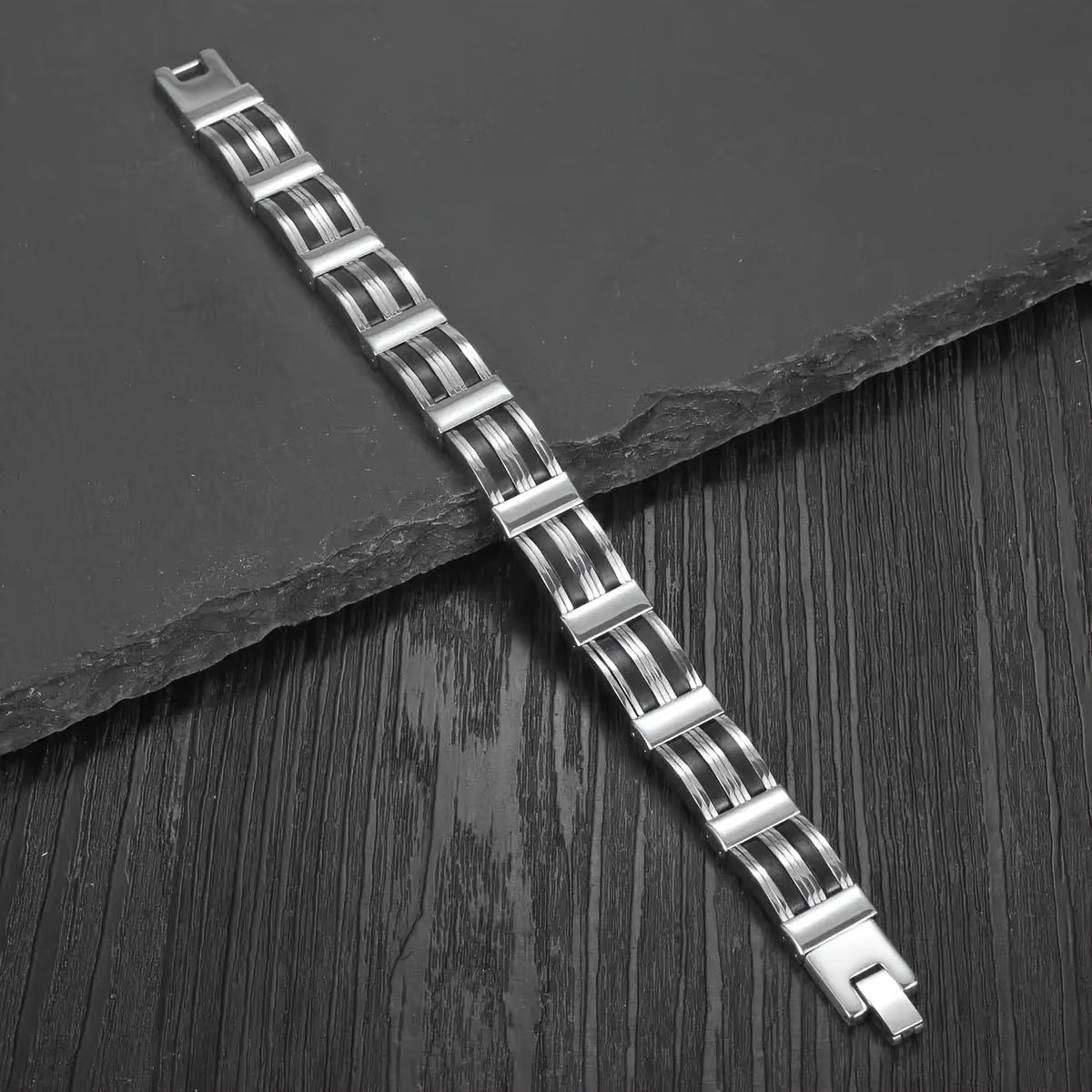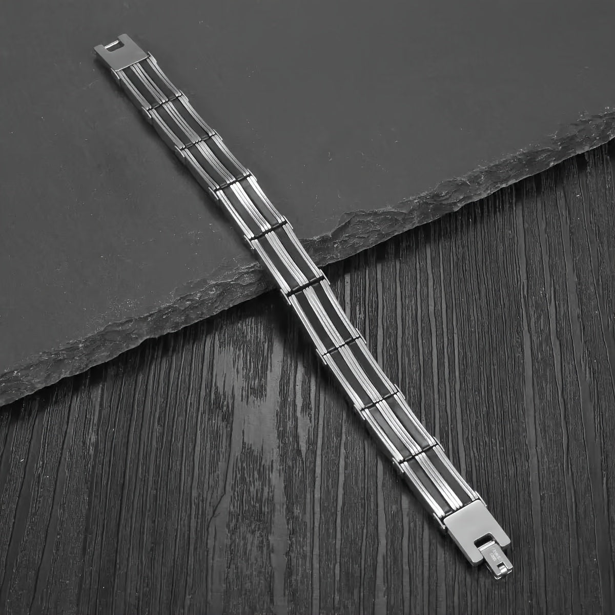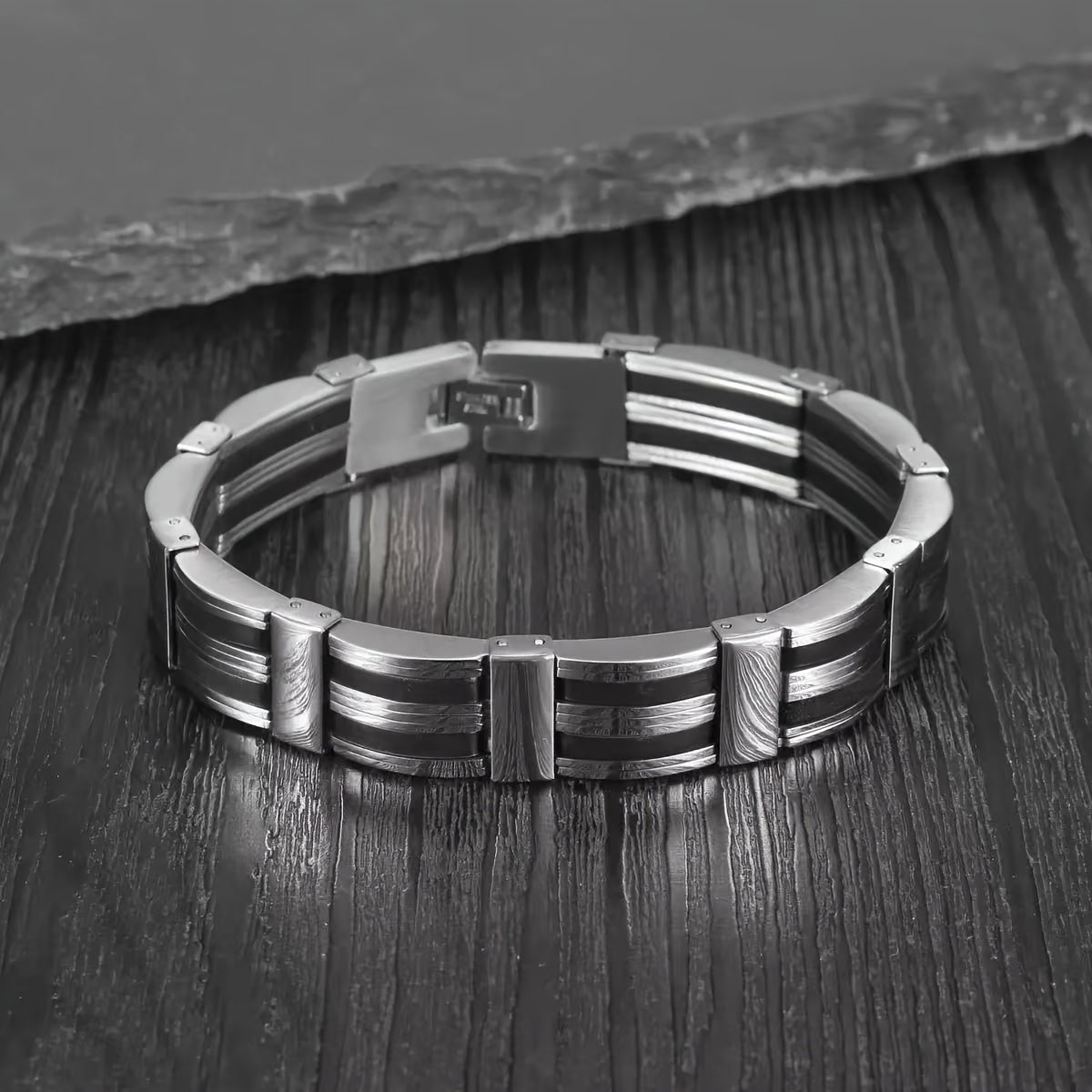 This stylish men's bracelet features a silicone band with a durable stainless steel clasp. It's a personalized and thoughtful gift for fathers.