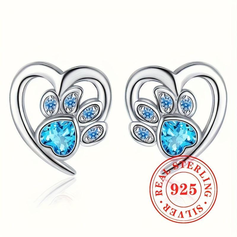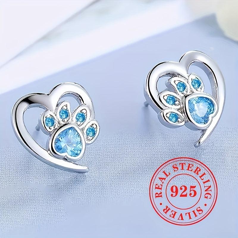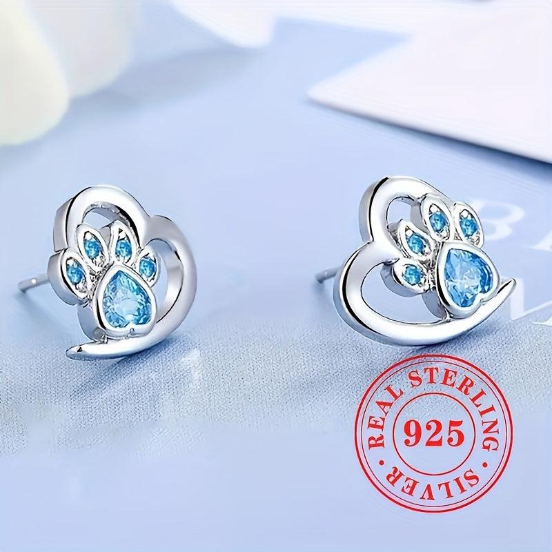 These S925 pure silver earrings feature synthetic sea gemstone animal footprints, a unique and elegant choice for daily casual jewelry.