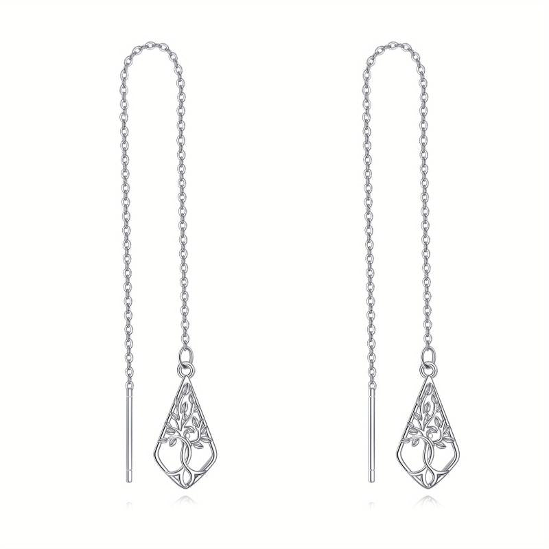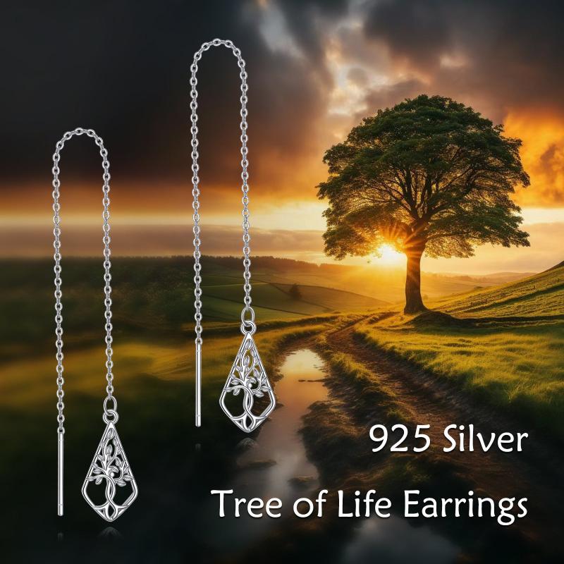 These sterling silver threader earrings feature a beautiful Tree of Life design, perfect for women and girls.