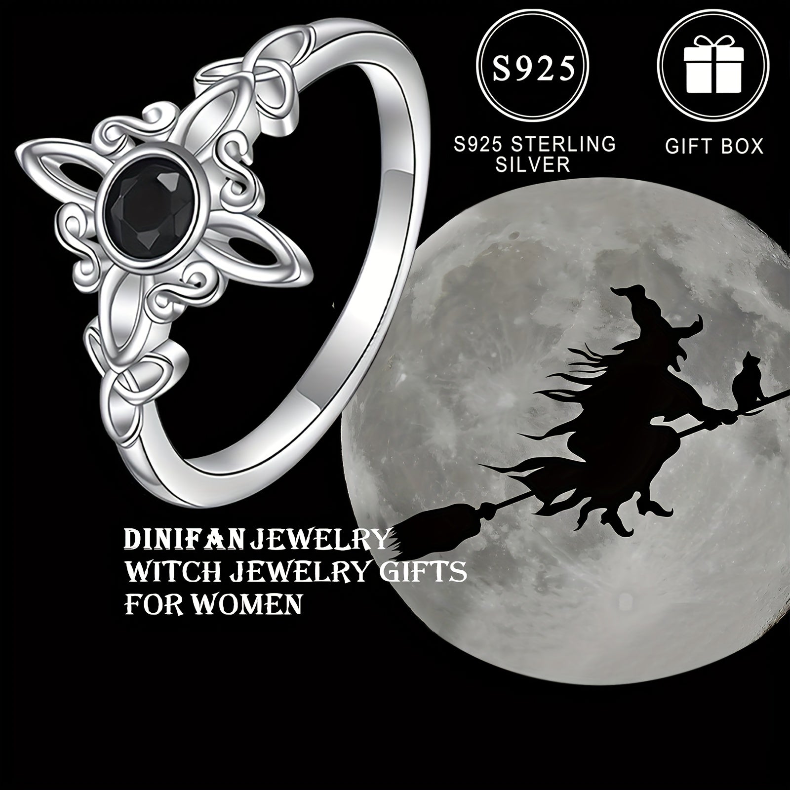 This stunning S925 sterling silver ring features a synthetic zirconia studded Celtic knot design, perfect for any occasion including Mother's Day. Show your love with this unique piece of witch jewelry.