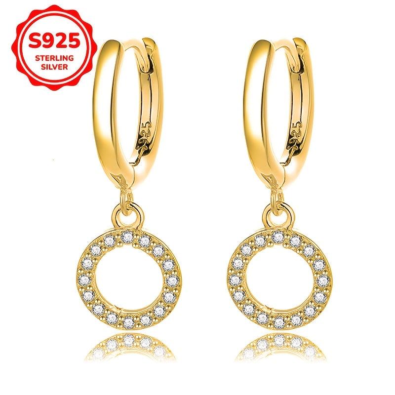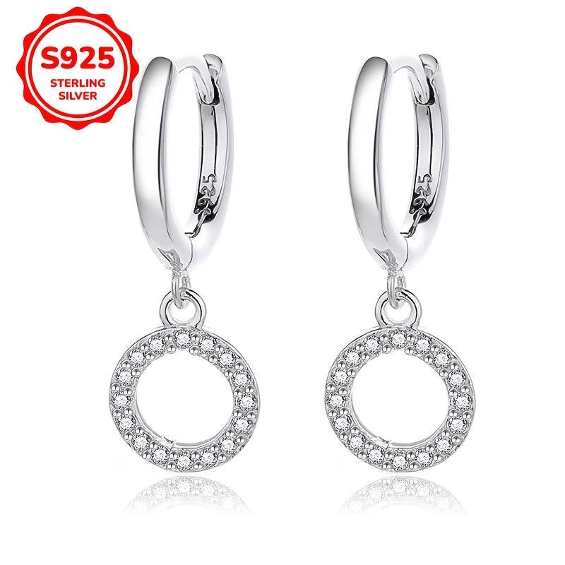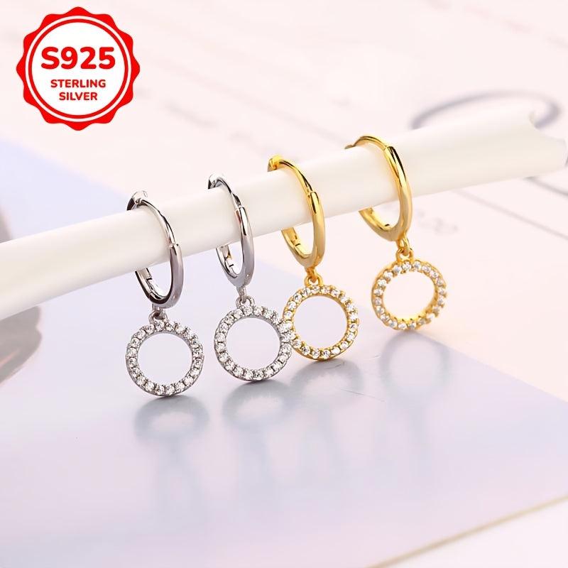These elegant drop earrings are crafted from 925 silver and feature zirconia dangling circles, weighing 2.4 grams. Ideal for daily wear, vacations, or as gifts.