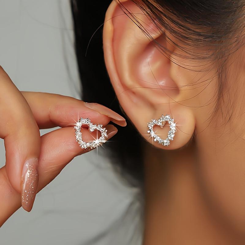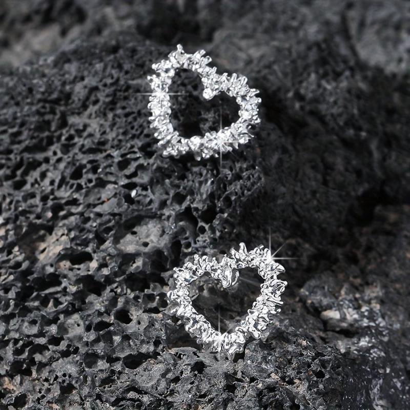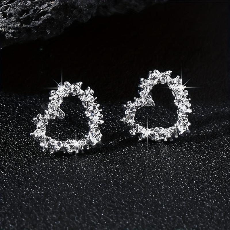 These elegant silvery love earrings feature a small and broken design, adding a unique touch to your outfit.