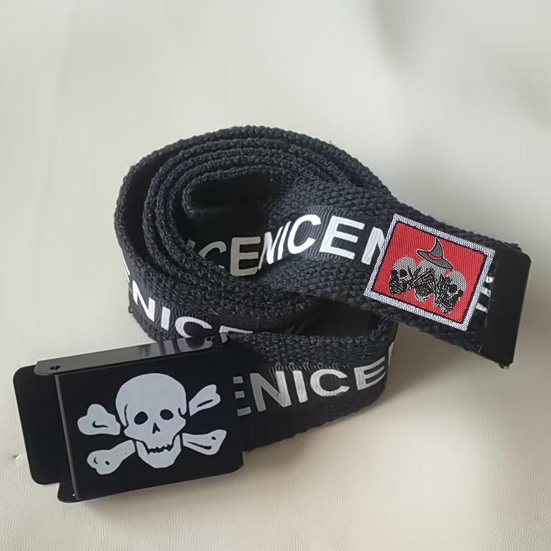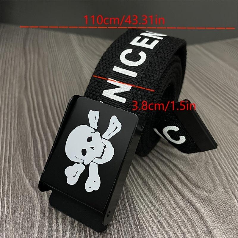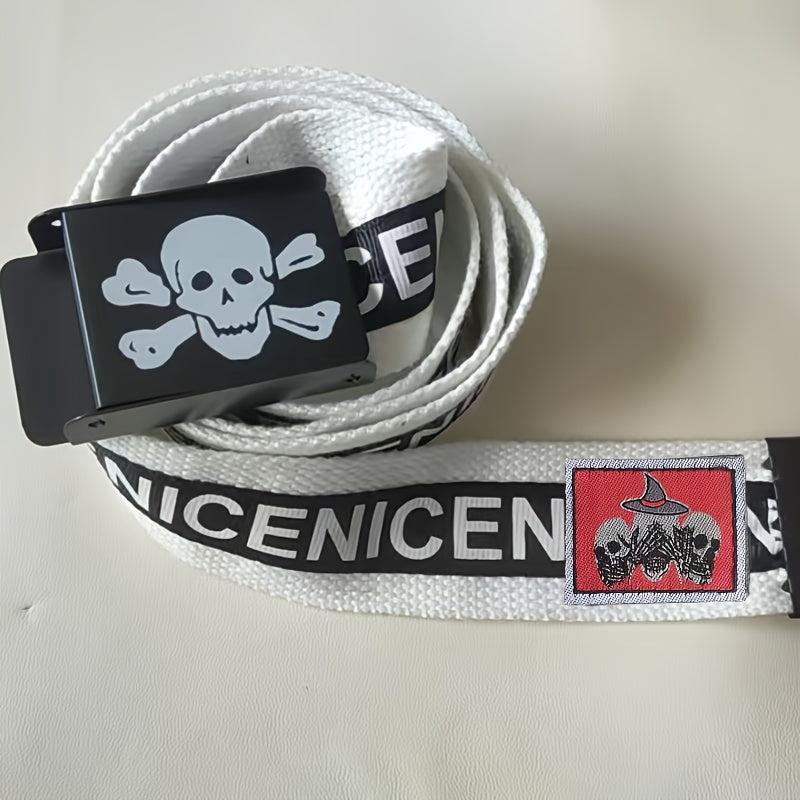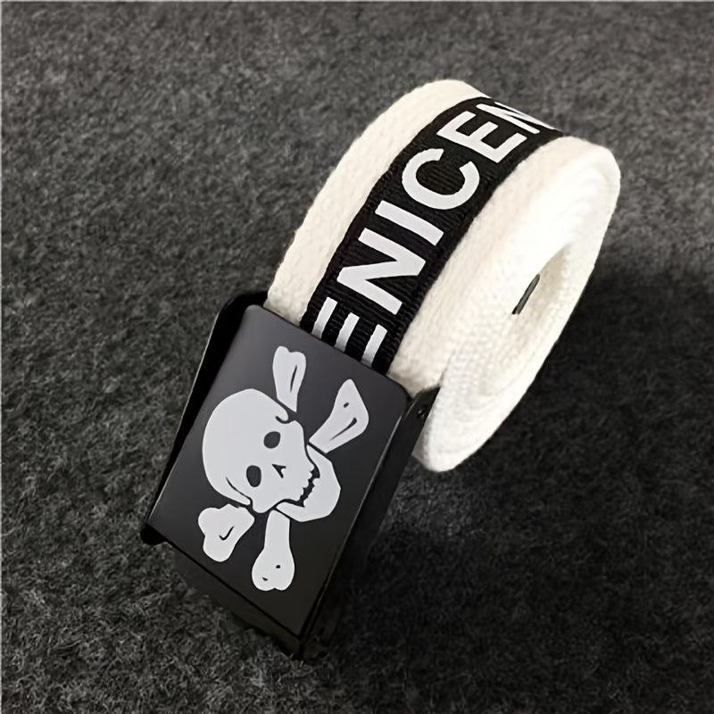 Skull & Crossbones Canvas Belt Edgy Unisex Durable Woven Construction