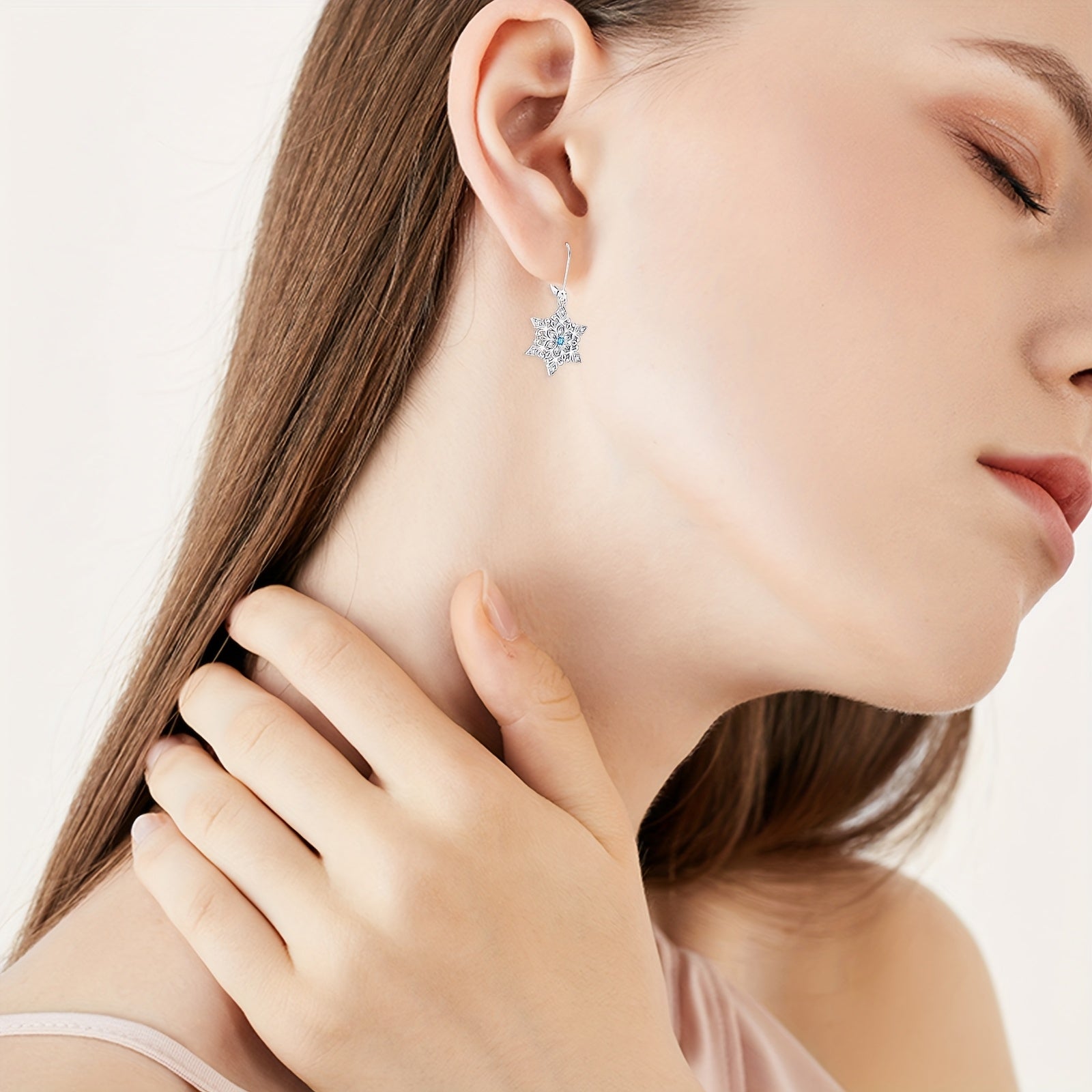 Snowflake Earrings 925 Pure Silvery Winter Earrings Jewelry