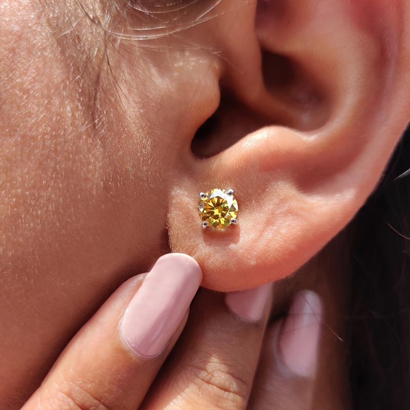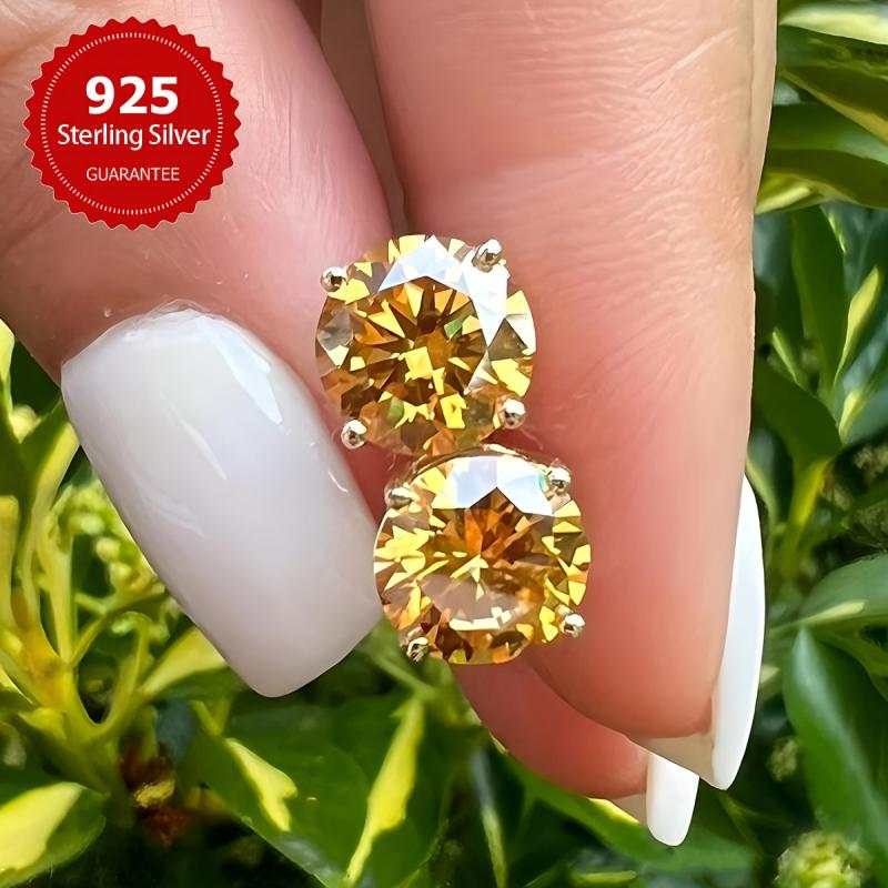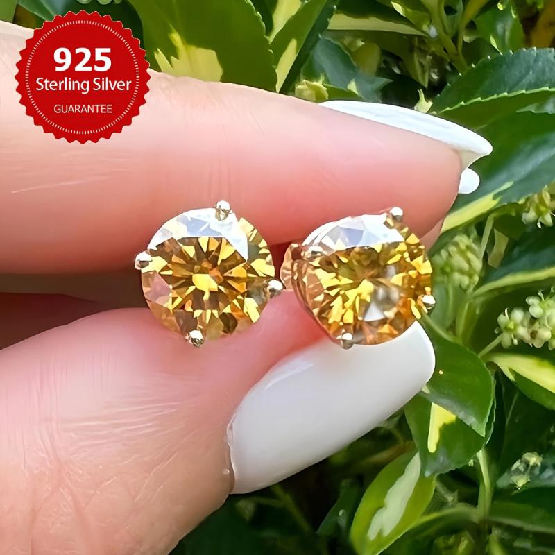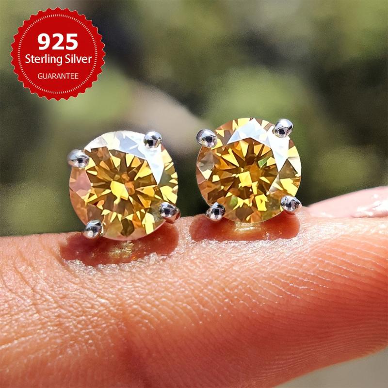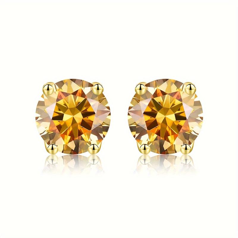 These dazzling Moissanite stud earrings are crafted in s925 sterling silver and feature a beautiful yellow hue. They are the perfect accessory for any outfit and make a great gift for Mother's Day.