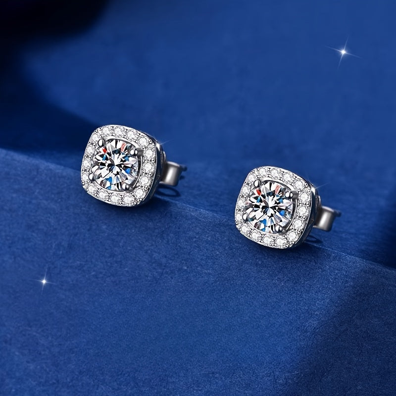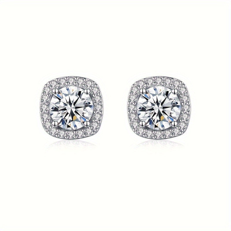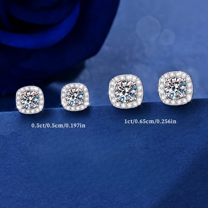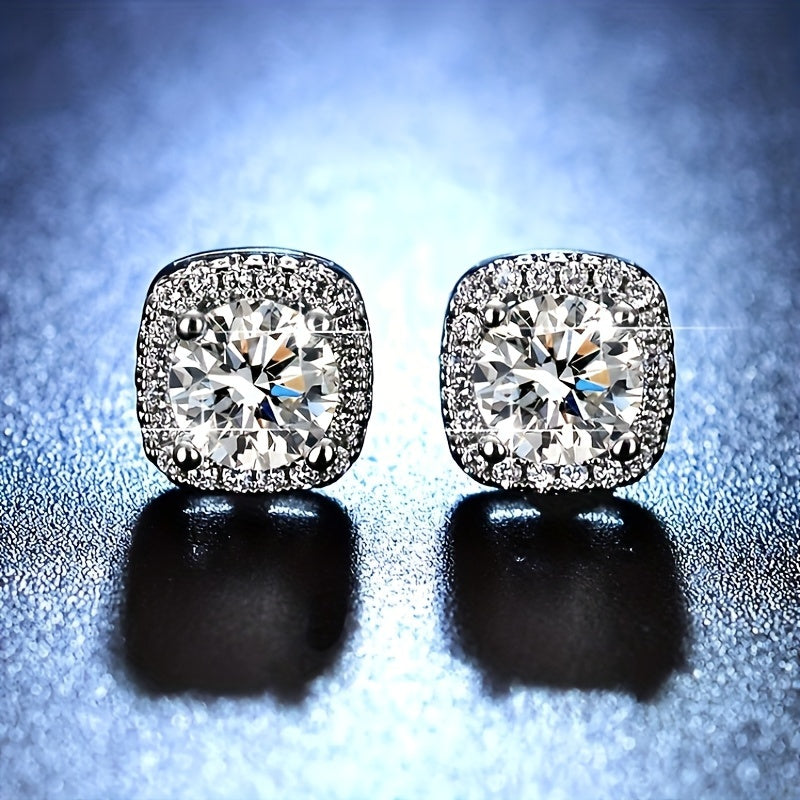 Square CZ Stud Earrings S925 Sterling Silver Hypoallergenic
