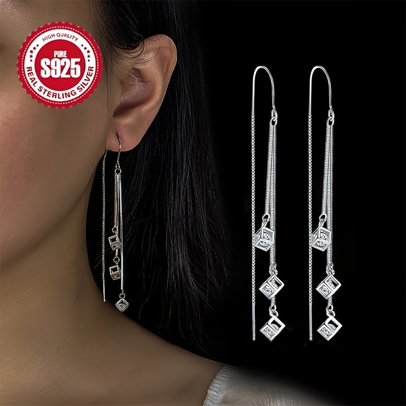 Add glamour to your look with these stunning square tassel earrings. Perfect for summer, seaside, and weddings. Made of high-quality 925 silver.